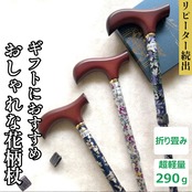 ウェルファン 夢ライフステッキ 柄杖折りたたみ伸縮型 花シルバー