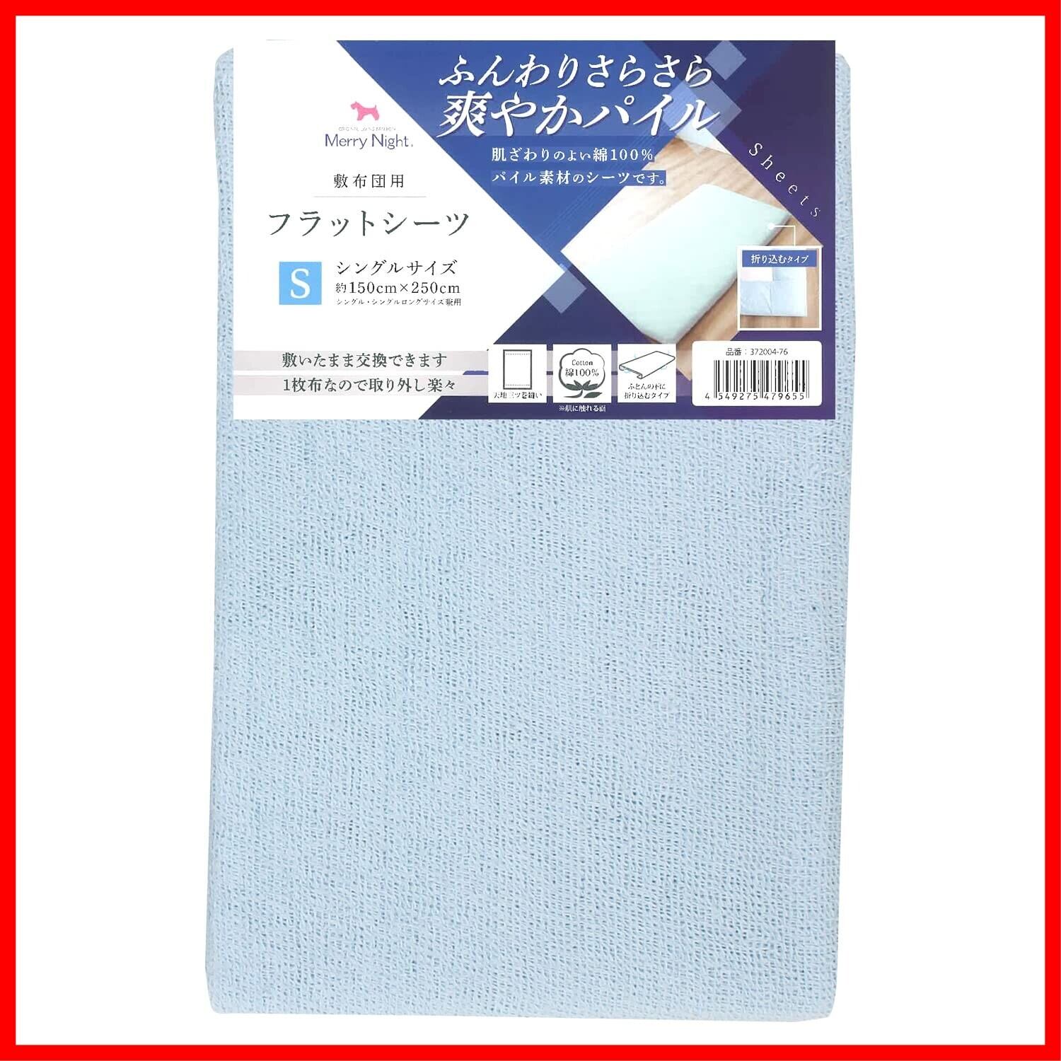 メリーナイト シーツ フラットシーツ パイル生地 ブルー 敷布団用 シングル 約150×250cm 綿100% ふんわりさらさら肌ざわり 洗える オールシーズン 372004-76