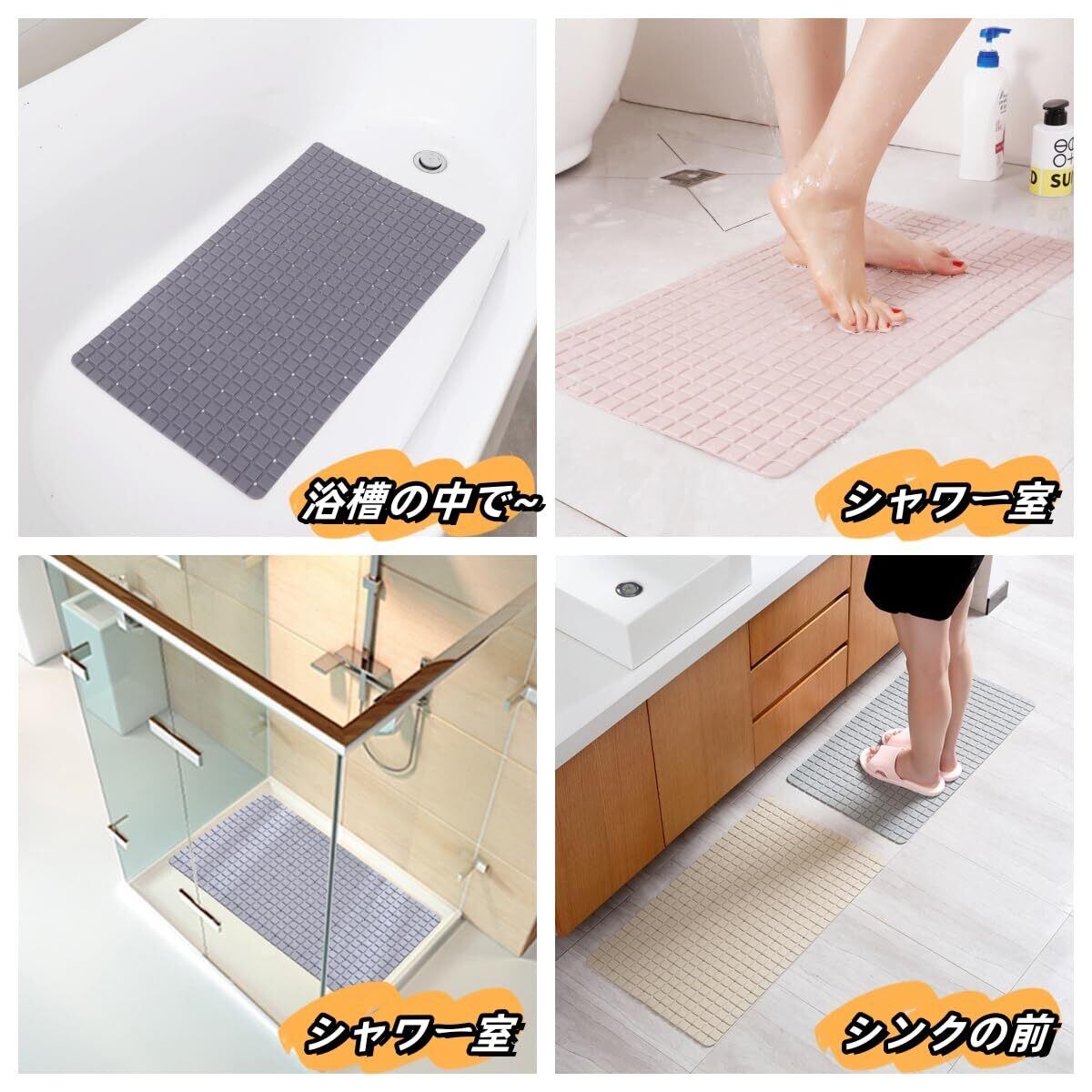 【柔らかくて快適】正方形の格子デザイン、マッサージヘッドなし、足の裏にもっと快適です。 入浴時にはマッサージのような適度なクッション性があり、快適に入浴できます。 湯船に浸かって体をほぐしながら、フットマッサージの優しいパワーを感じてください。