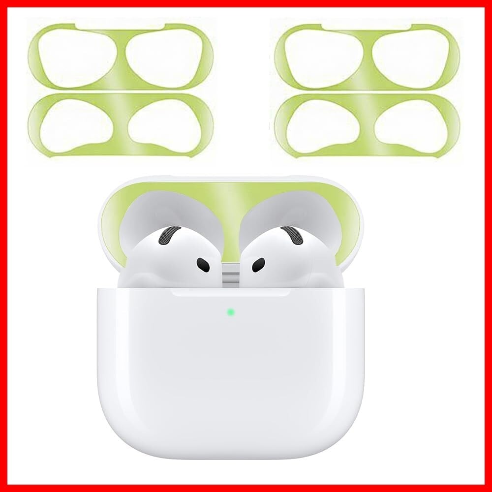 【2024強化版】ILYAML for AirPods 4 ダストガード エアーポッズ 4用 ガードカバー 故障防止 吸着 ほこり ゴミ 金属製 侵入防止 防塵 粉塵防止 グリーン 4枚(2セット) | hananoki