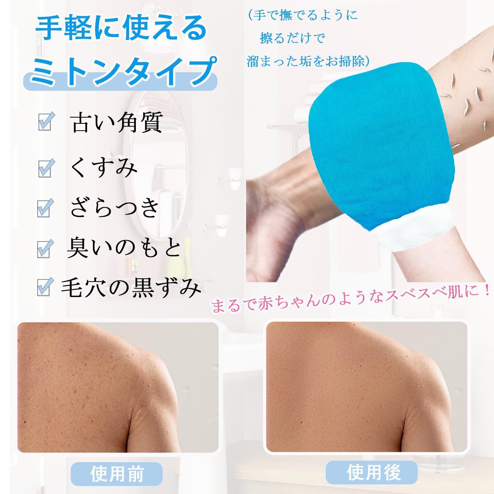 [Senteria] 垢すりタオル あかすり ミトン お風呂手袋 2点セットブルー 肌に優しい 角質取り 両面の血行促進 体臭ケア 繰り返し使用 泡立ち ボディタオル ハード 腕 背中 足 脚 男女兼用 お風呂 浴用 手袋 入浴用品 ギフト プレゼント 贈り物 | hananoki