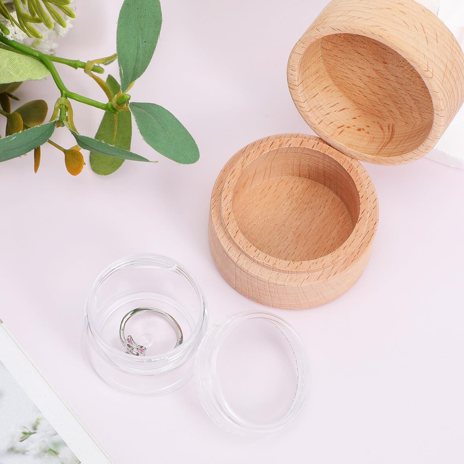 【エレガントな木製の外観】この小さくて丸いリング ボックスは、美しく細工された木製の外観が特徴で、素朴で時代を超越した外観を提供します。