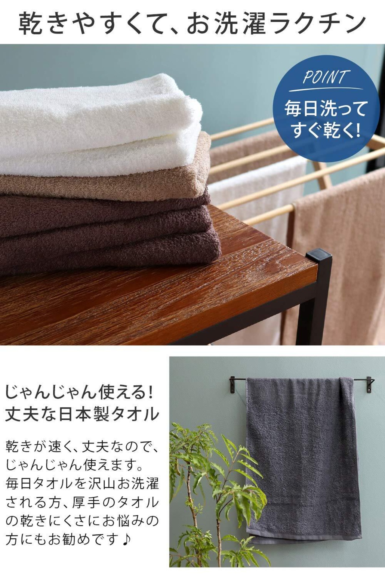 【抜群の吸水性】触れた瞬間に水気を吸い取る優れた吸水力を実感いただけます。キッチンタオルや洗顔用のタオル、お風呂上がりの体用にもお使いいただけます。