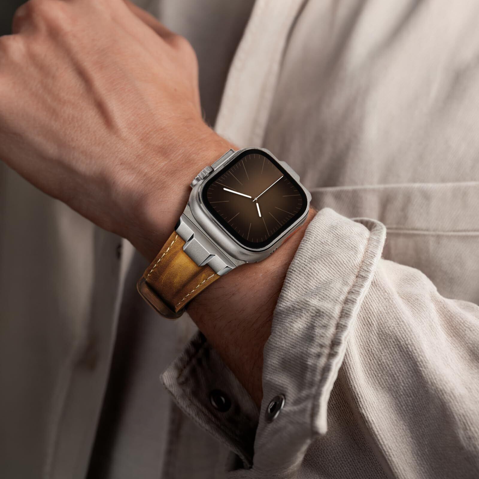【洗練されたデザイン】3D彫刻と研磨された斜めエッジの金属コネクタが特徴で、Apple Watch Ultraのデザインと完璧にマッチします。マットとポリッシュの融合が現代的なスタイルを演出します。
