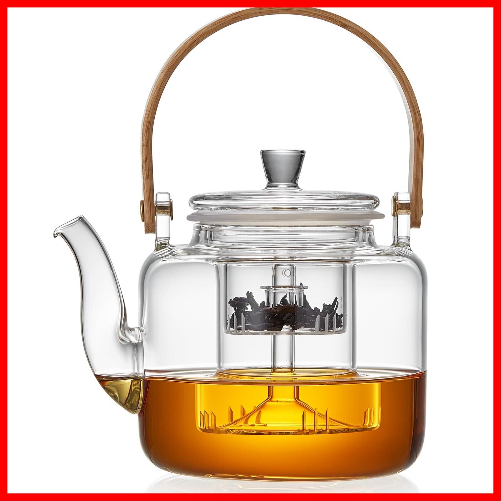 こちらの透明ティーポットは、蒸し茶と煮出し茶の両方に対応し、大容量で直火にも対応しています。竹製の持ち手はレトロで優雅なデザインでありながら、耐熱性も兼ね備えています。上向きの持ち手設計により、省スペースを実現しています。従来のティーポットよりもアップグレードされた耐熱ガラスティーポットは、蒸し茶用と煮出し茶用の茶こしを重ねて使える新しいバージョンです。蒸し茶用の茶こしは、煮出し茶用の茶こしの上に重ねて使用でき、より便利で省スペースです。