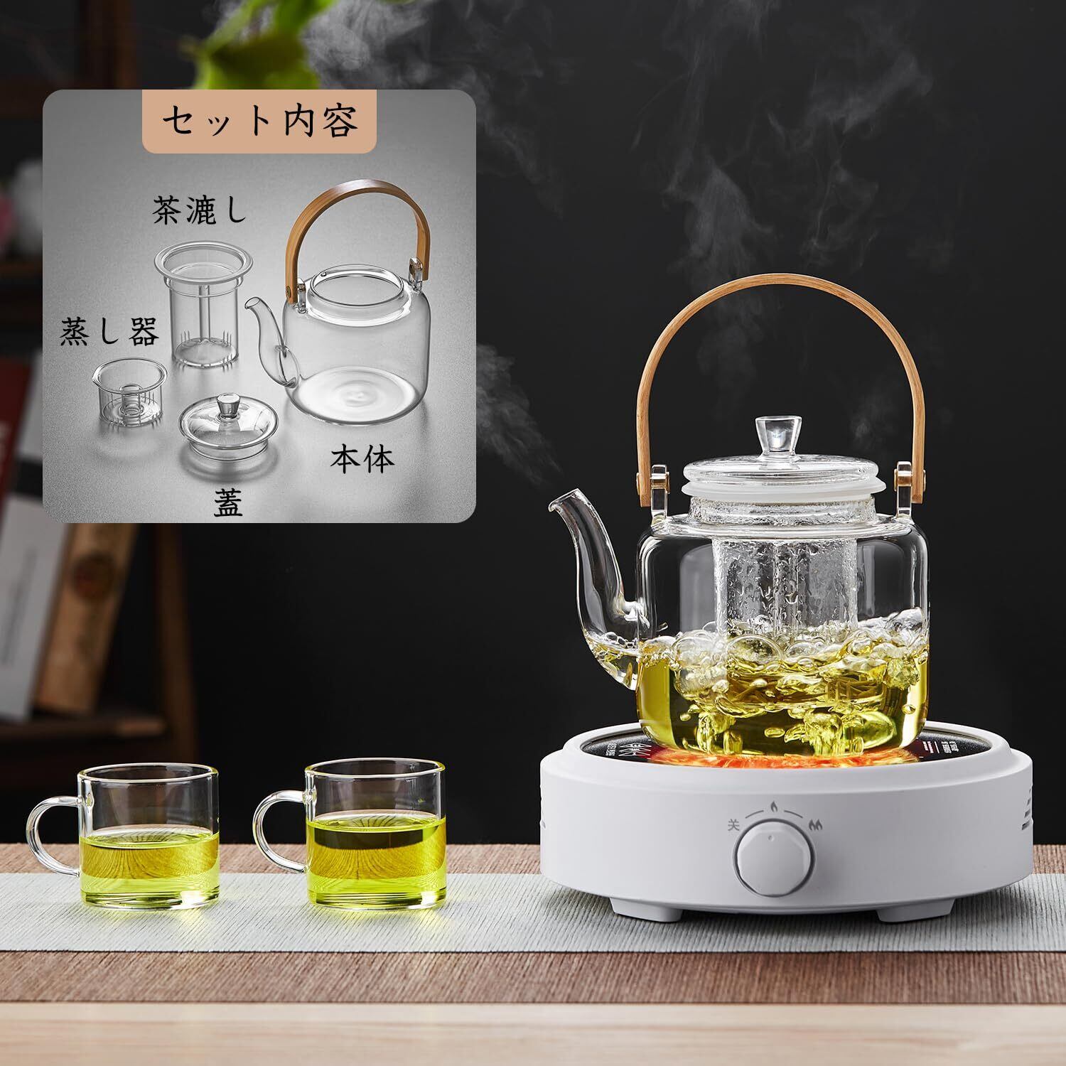 満水容量は1000mlと大容量なので、5人以上のご家庭でも十分に対応できます。緑茶やほうじ茶、紅茶、麦茶、烏龍茶、白茶、プーアル茶、養生茶、鉄観音、漢方茶など、様々なお茶を楽しむことができます。蒸し茶や煮出し茶に最適で、幅広い種類のお茶に対応可能です。さらに、白湯を沸かすこともでき、空気加湿器としても使用できます。