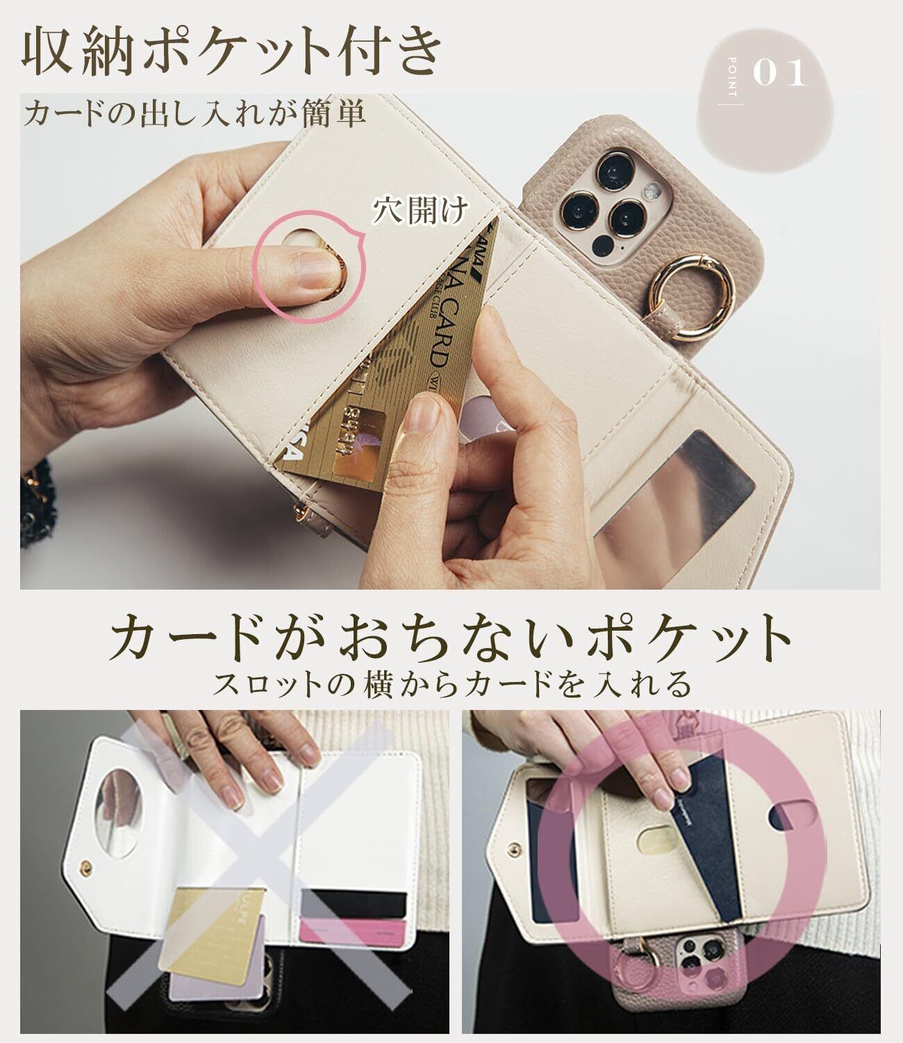 【いphone 16 ケース カード収納・ミラー付き】背面タイプのケースですが、カード収納可能です。携帯ケースのカードポケットを開けると、左側と真ん中のポケットにそれぞれ1枚ずつカードを収納できます。日常的に必要なsuica交通系ICカードなどを収納できます。スロットに便利な指穴があり、カードの取り出しがとても簡単です。横から抜き出しのため、、落ちる心配がなくしっかり収まることができます。あいふぉん ケースの内側には鏡が付き、メイクをチェックしたり、お化粧を直したり、食事後のオーラルチェックに最適です。