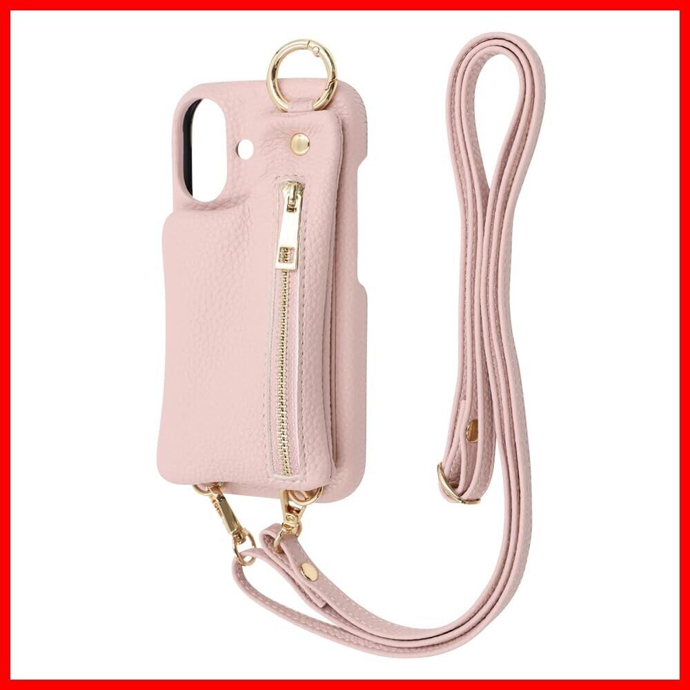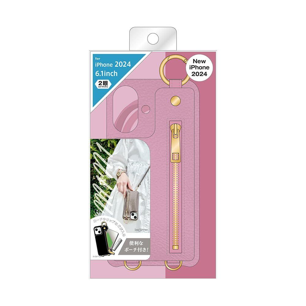 イングレム iPhone 16 (2024年発売モデル) ケース m1n1 ミニ ショルダー ネック ストラップ ポーチ付き オープンレザーケース ペールピンク アイフォン16 スマホケース スマートフォンケース IS-P46OLC2/PP
