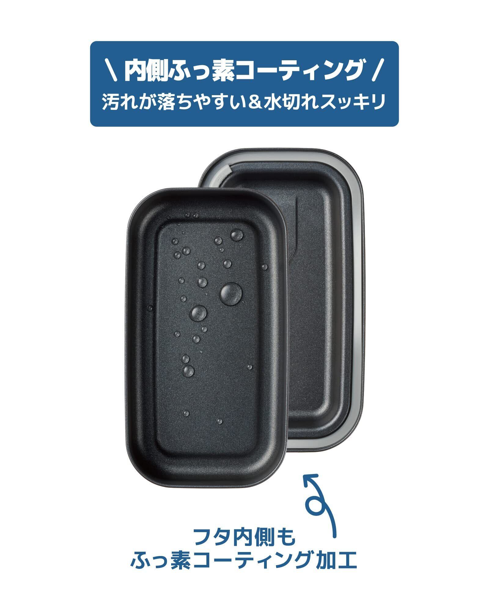 内側ふっ素コーティングだから、汚れが落ちやすい&水切れスッキリ。アルミ製の弁当箱