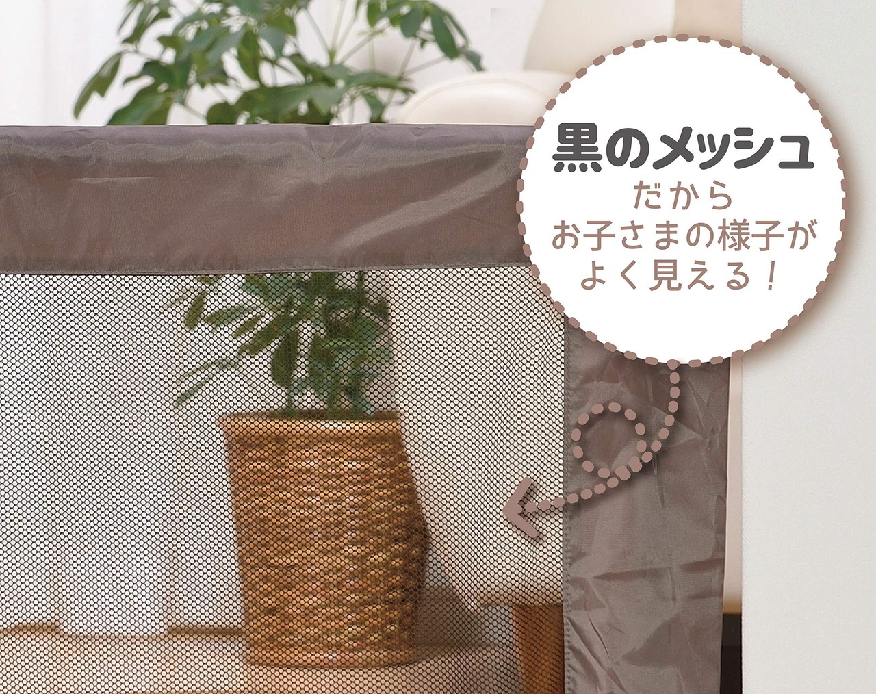 メッシュ素材を使用しているので、お子様をやさしくしっかりガードします。