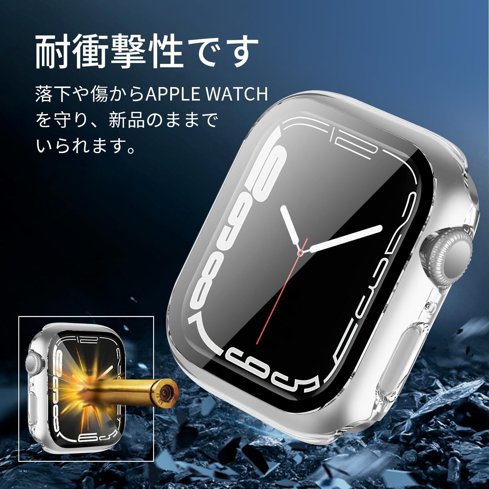 OHMYGD 対応 Apple Watch ケース 49mm 46mm 45mm 44mm 42mm 41mm 40mm 38mm アップルウォッチ カバー ガラスフィルム 一体型 高透過率 指紋防止 傷防止 Apple Watch 9/8/7 ケース アップルウォッチ9/8/7 カバー PC素材 全面保護 耐衝撃 超薄型 装着簡単 二重構造(45mm,クリア)