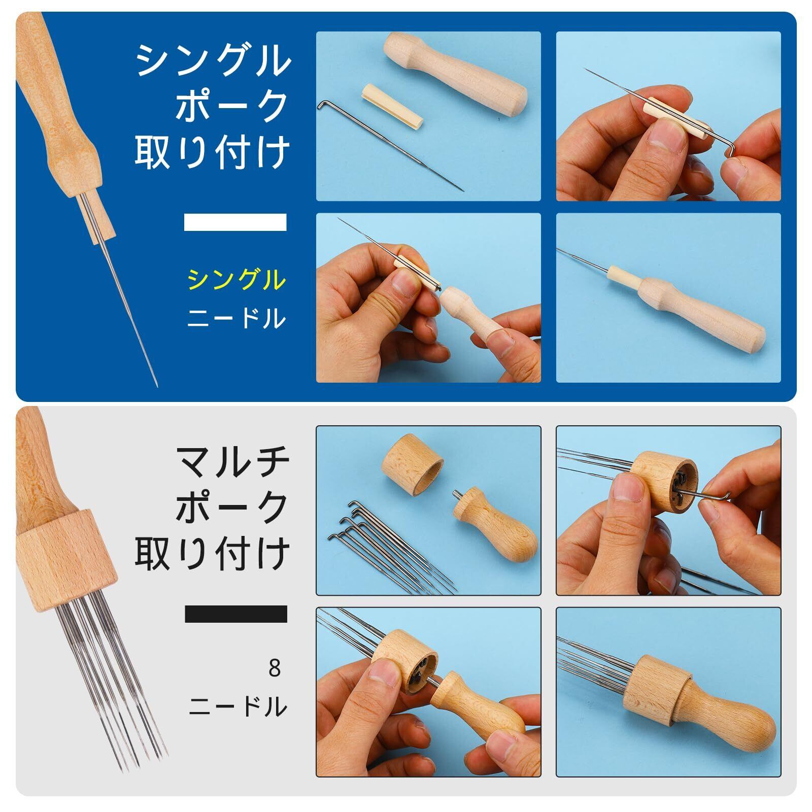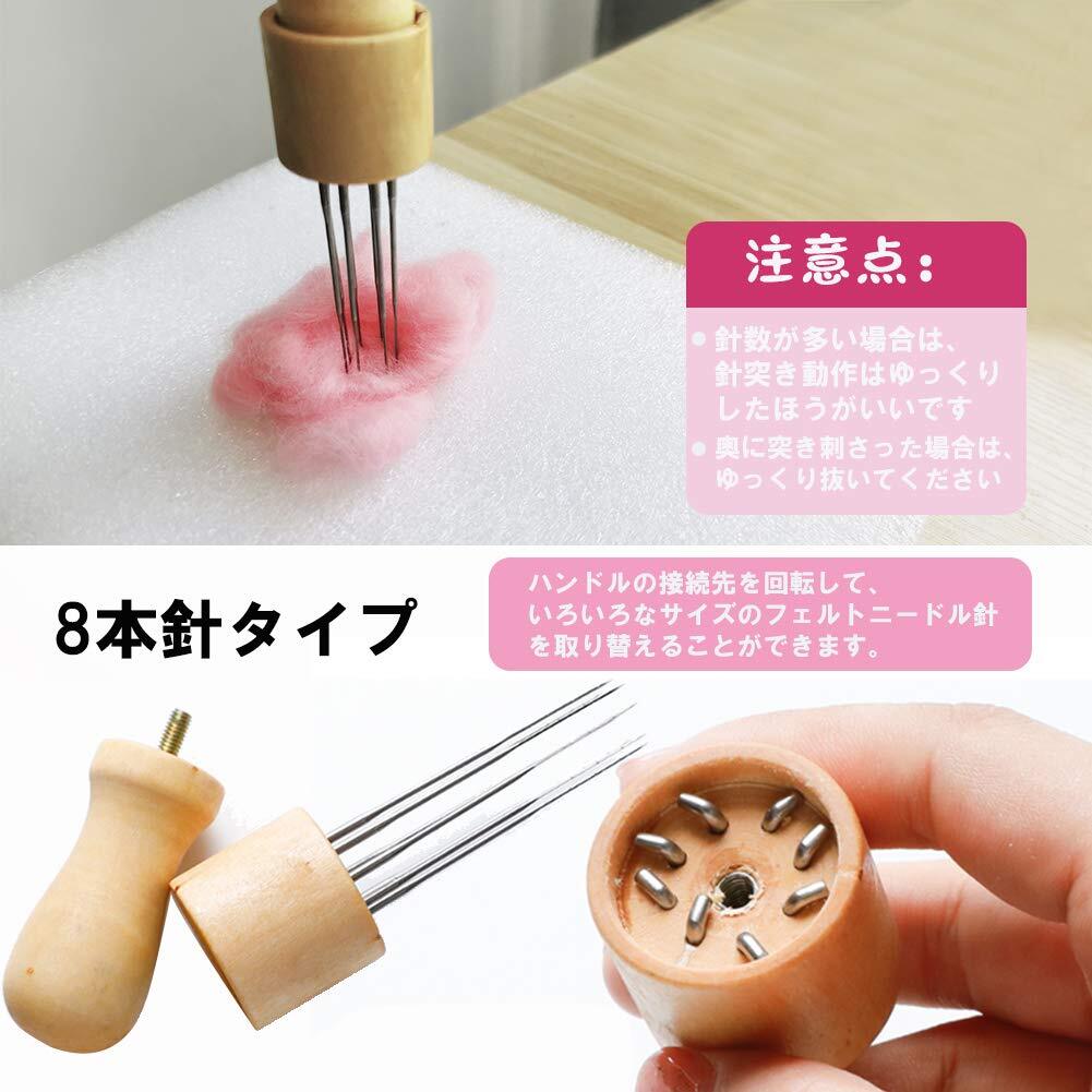 商品内容:8針ニードルフェルトツールx1、木製ニードルホルダーx1、3つの透明なボトル、3種類のサイズの針。