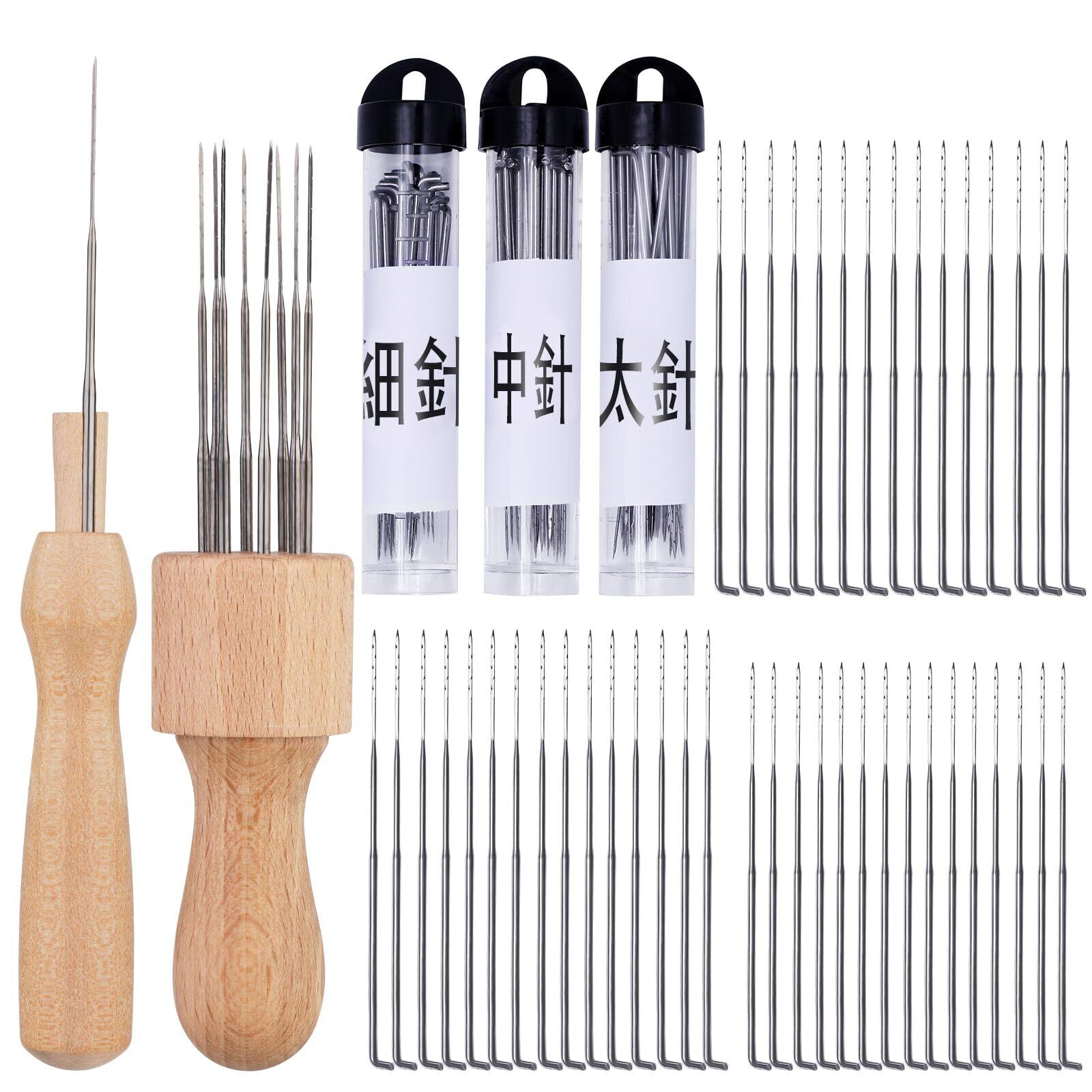 Dennty 羊毛フェルト 3サイズ 90本 フェルト針 フェルトニードルキット フェルティングニードル 手芸制作セット 基本入門キット 専用道具 8本針 ポンチ針 木製ハンドル | hananoki