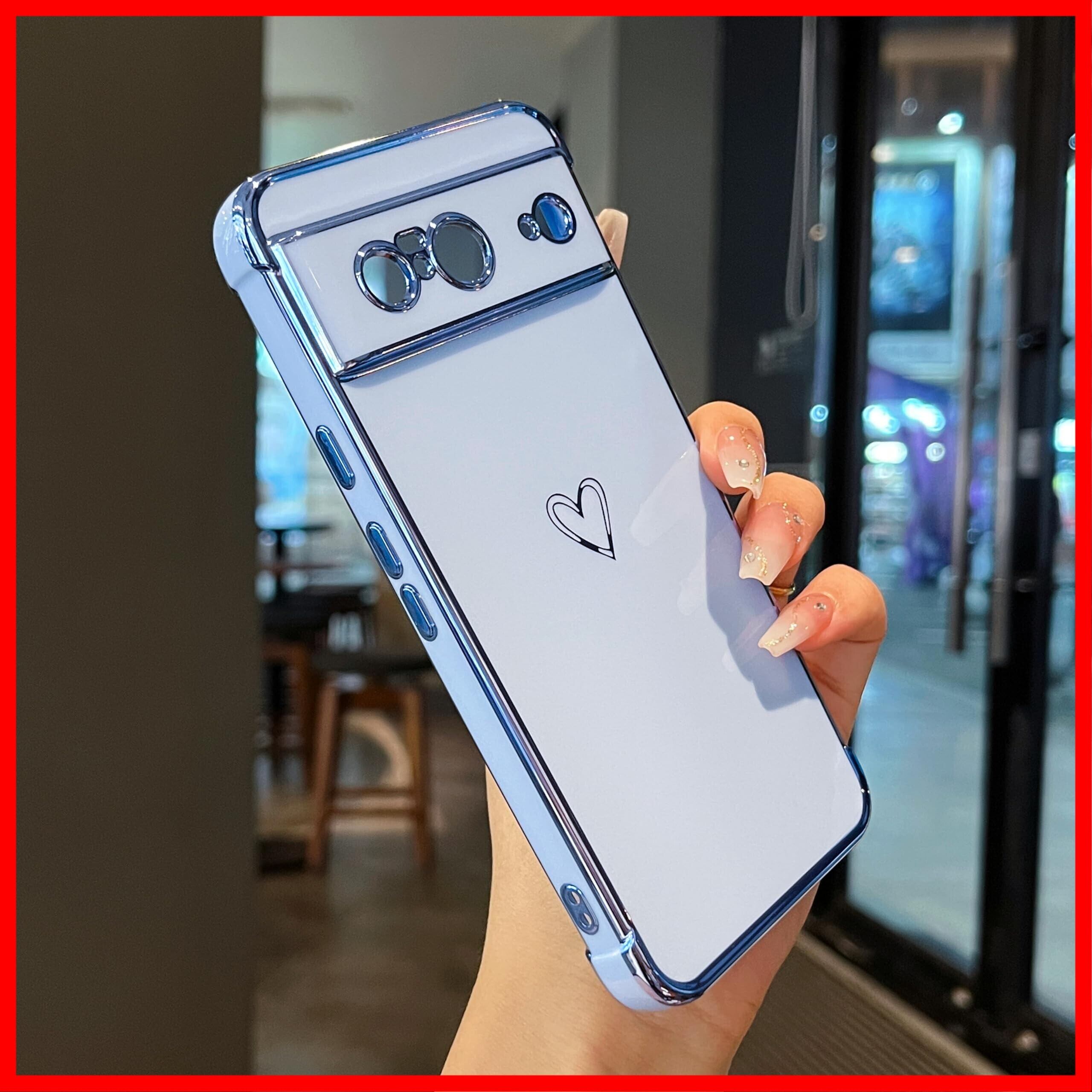 ZTOFERA Google Pixel 8 用 ハートケース おしゃれ 韓国 かわいい グーグル ピクセル 8 ケース 柔軟な TPU シリコン メッキ加工 ソフト 軽量 耐衝撃 携帯カバー 女性 心パターン Pixel 8 スマホケース ワイヤレス充電対応 (シエラブルー) | hananoki