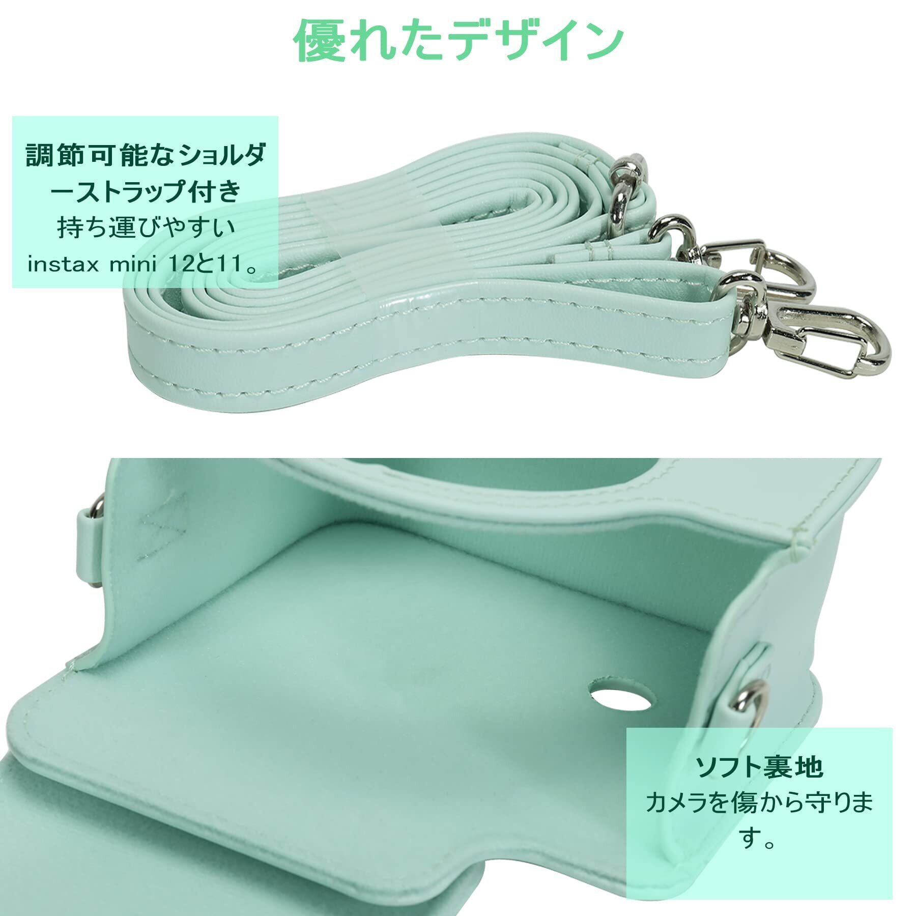 【Aenllosi 専用収納ケース】互換品 FUJIFILM チェキ instax mini 12 / 11 インスタントカメラ INS MINI 12 ショルダーストラップ付き ミントグリーン(ケースのみ)