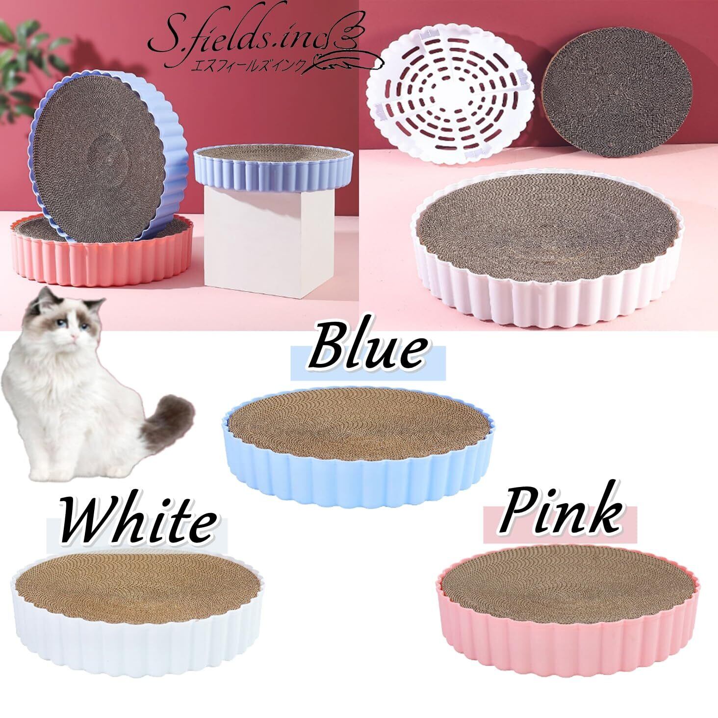 ネコ用爪とぎベッドです。ブルー、ピンク、ホワイトの3カラーからお選びいただけます。