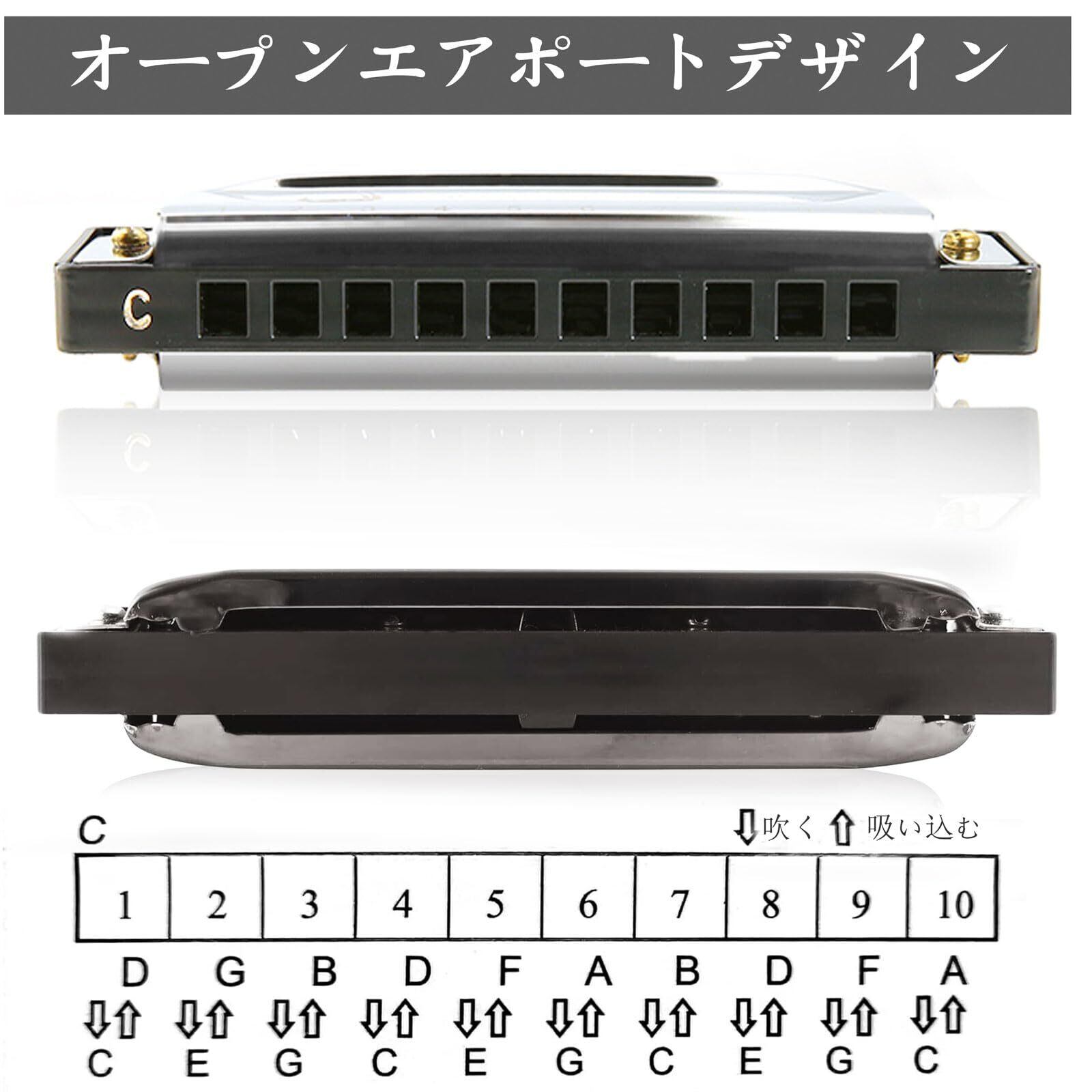 総合的なオールインワン・スターターセット: 10穴ハーモニカ、吹き方マニュアル、マイクロファイバー磨きクロス、ケース