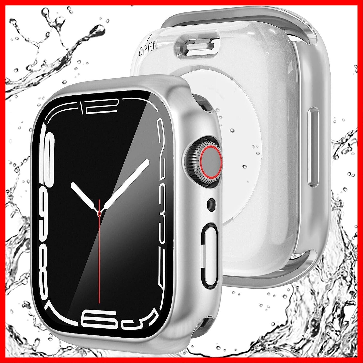 AMAPC for Apple Watch ケース 2023 45mm 44mm 対応 と互換性があり 数秒で Ultra シリーズの外観に変換できます 360度全面防水 バンド 水泳・スポーツ専用 ガラスフィルム 一体型 apple watch 用 カバー 360フルボディ防水 アップルウォッチ ケース Series 9/8/7 45mm対応 シルバー | hananoki