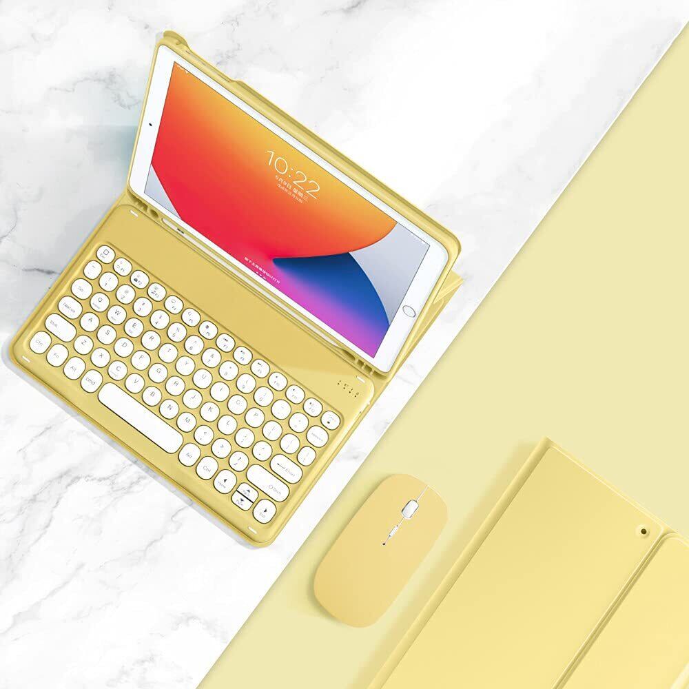 ワイヤレスマウス付き iPad6 iPad5 iPad Air2 Pro 9.7 キーボードケース カラフル 丸型キー レディース 可愛い iPad 第6世代 第5世代 アイパッド6 9.7インチ キーボードカバー bluetooth カラーキーボード,黄色