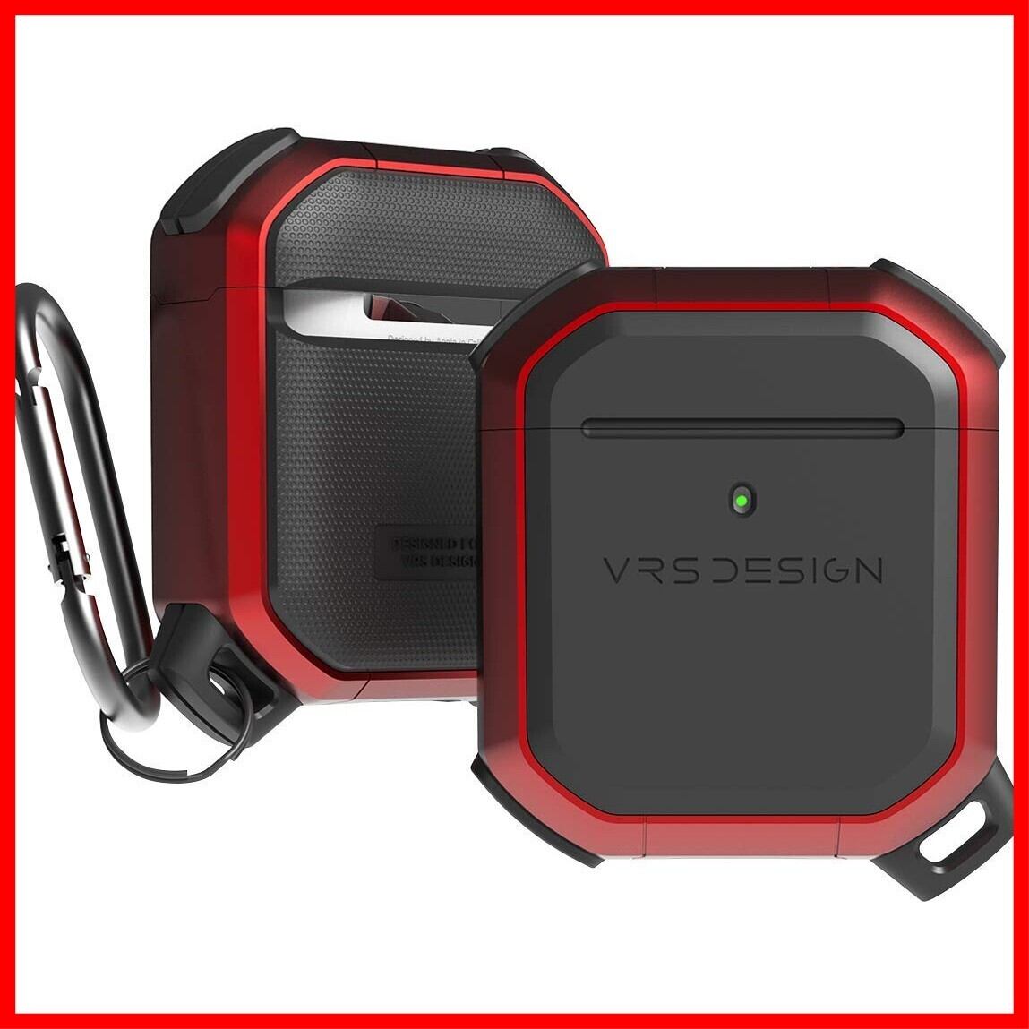 【VRS】 AirPods 対応 ケース 耐衝撃 カラビナ 付 収納ケース 2層構造 ハイブリッド 衝撃 吸収 ハード カバー 傷防止 落下防止 保護 ケースカバー アクセサリー [ Apple AirPods1 / AirPods2 Wireless Charging Case エアーポッズ 対応 ] ACTIVE メタルレッド