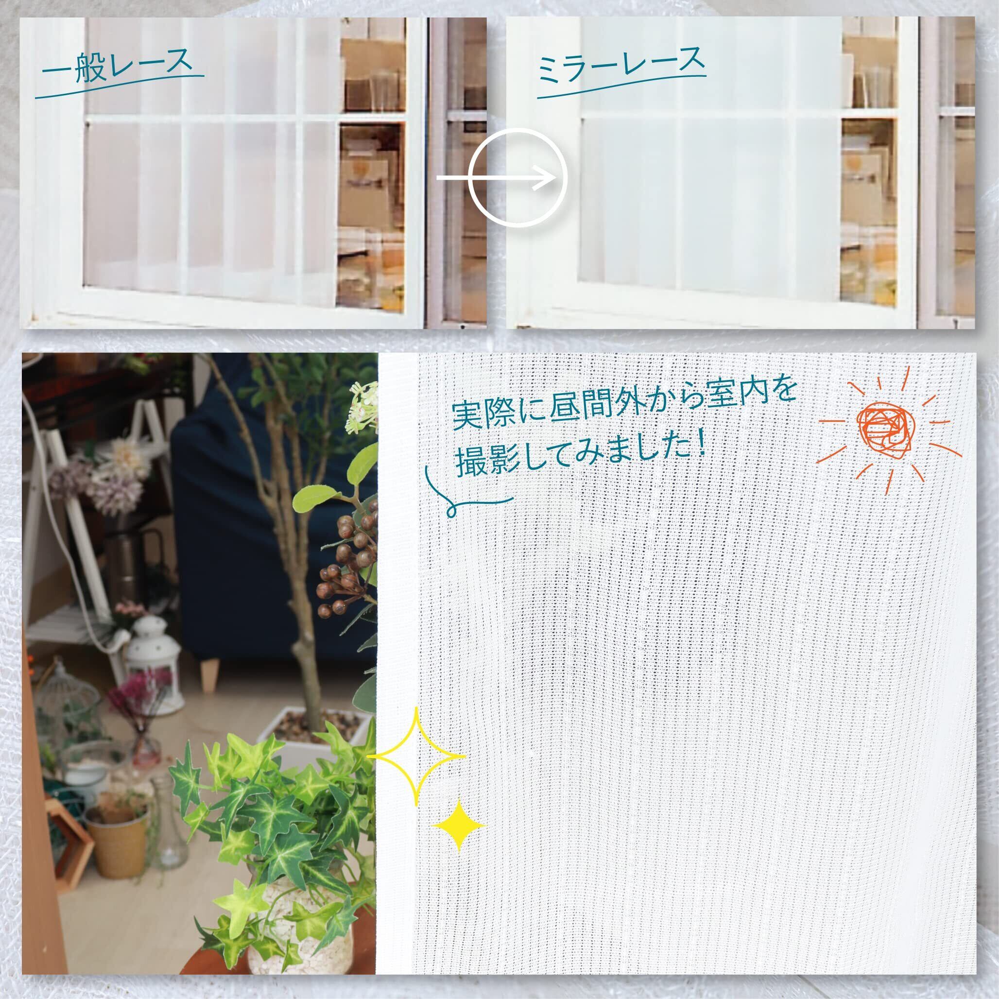 ミラーレースカーテン 昼間外から見えにくい UVカット レース 2枚組 + カーテンフック取り付け済み ストライプ柄 幅100x丈108cm 2枚セット