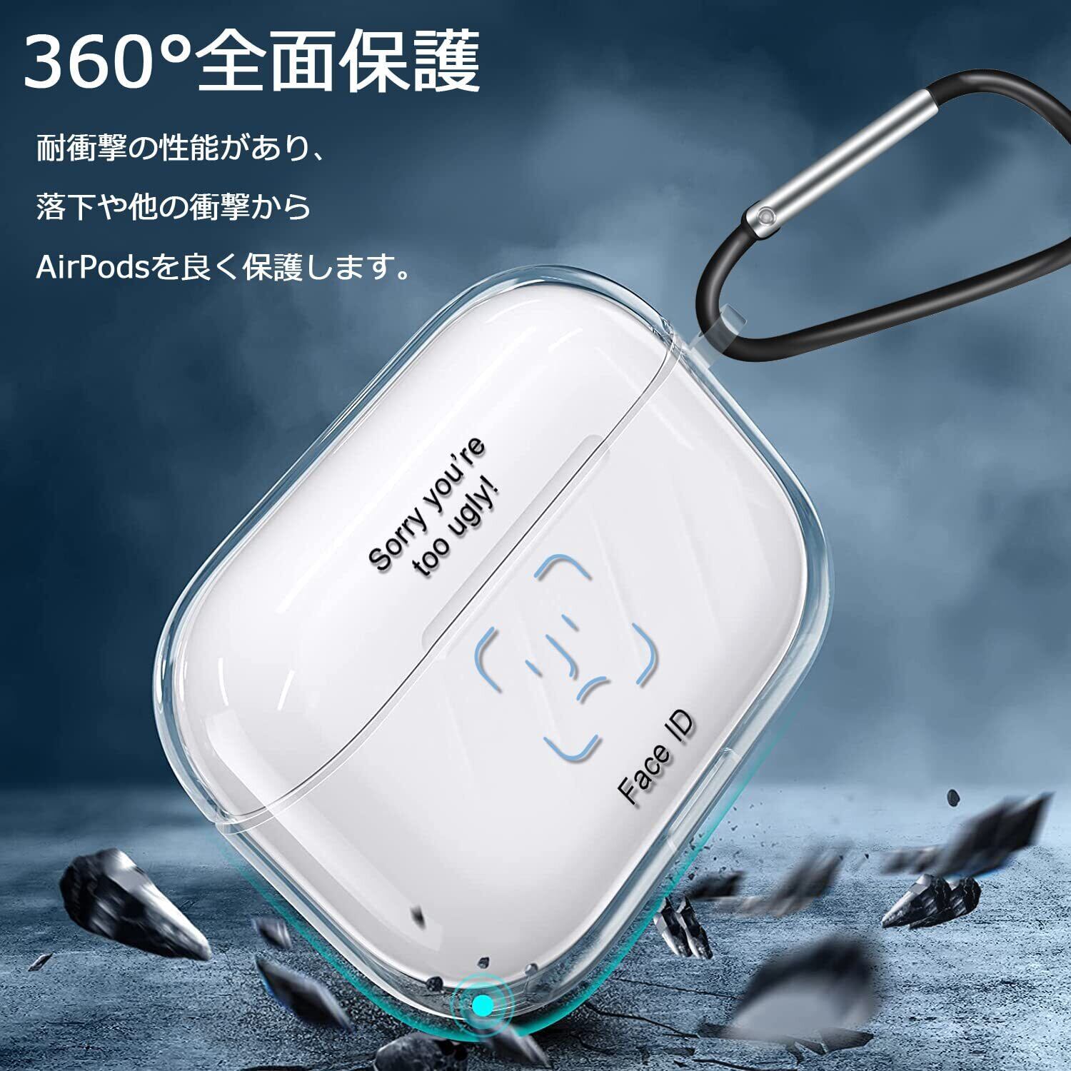 AirPods Pro ケース 2019年10月発売用 クリア おしゃれ おもしろい かわいい 創意 Face ID デザイン シンプル エアーポッズ ケース オシャレ 分離式 透明 TPU 充電ケース カラビナ付き 耐衝撃 ワイヤレス充電対応 AirPods Pro 用 ケース | hananoki