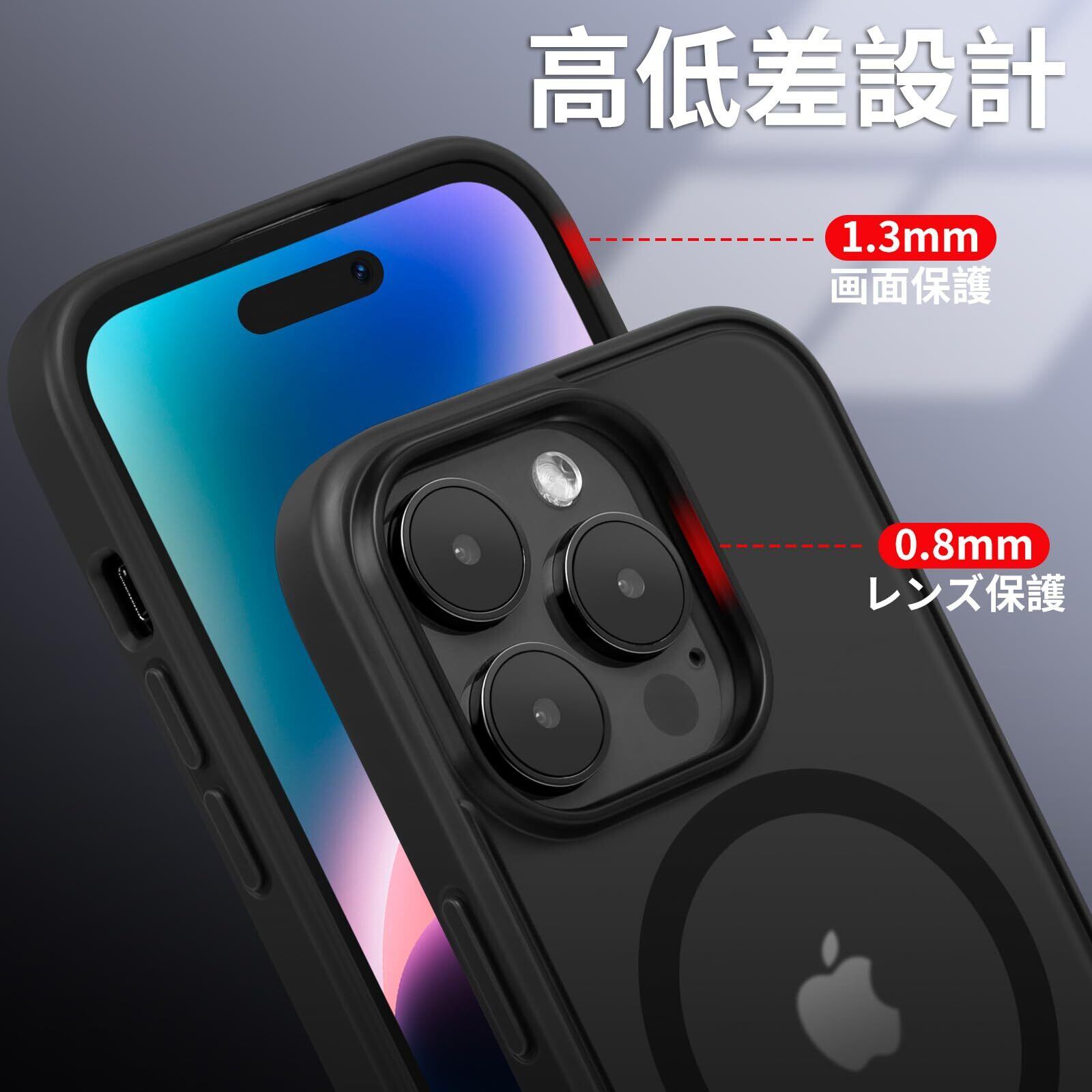 iPhone 14 Pro 用ケース MagSafe対応 ワイヤレス充電 2023新型 半透明 黄変防止 アイフォン14Pro用ケース 滑り止め 指紋防止 耐久性 マット感 耐衝撃性 6.1インチカバー (ブラック)