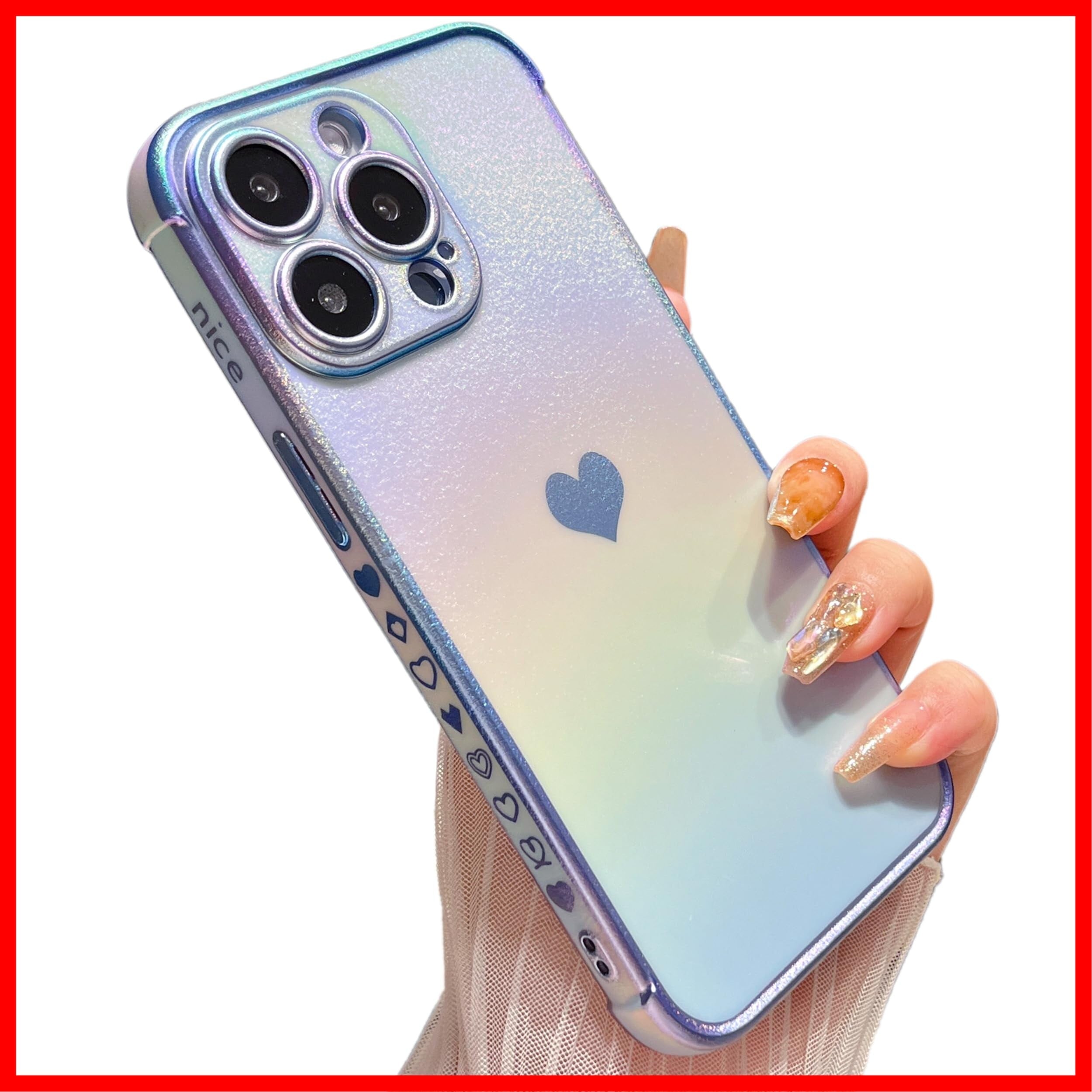 ZTOFERA iPhone 15 Pro 用 ハートケース iPhone 15 Pro ケース 柔軟な TPU シリコン スマホケース メッキ加工 エッジ ラグジュアリー 蛍光色 虹色 マット カバー ソフト 軽量 耐衝撃 おしゃれ 韓国 可愛い アイフォン 15 Pro ケース 女子 女性 心パターン 携帯電話カバー ワイヤレス充電対応 (虹色のシエラブルー) | hananoki