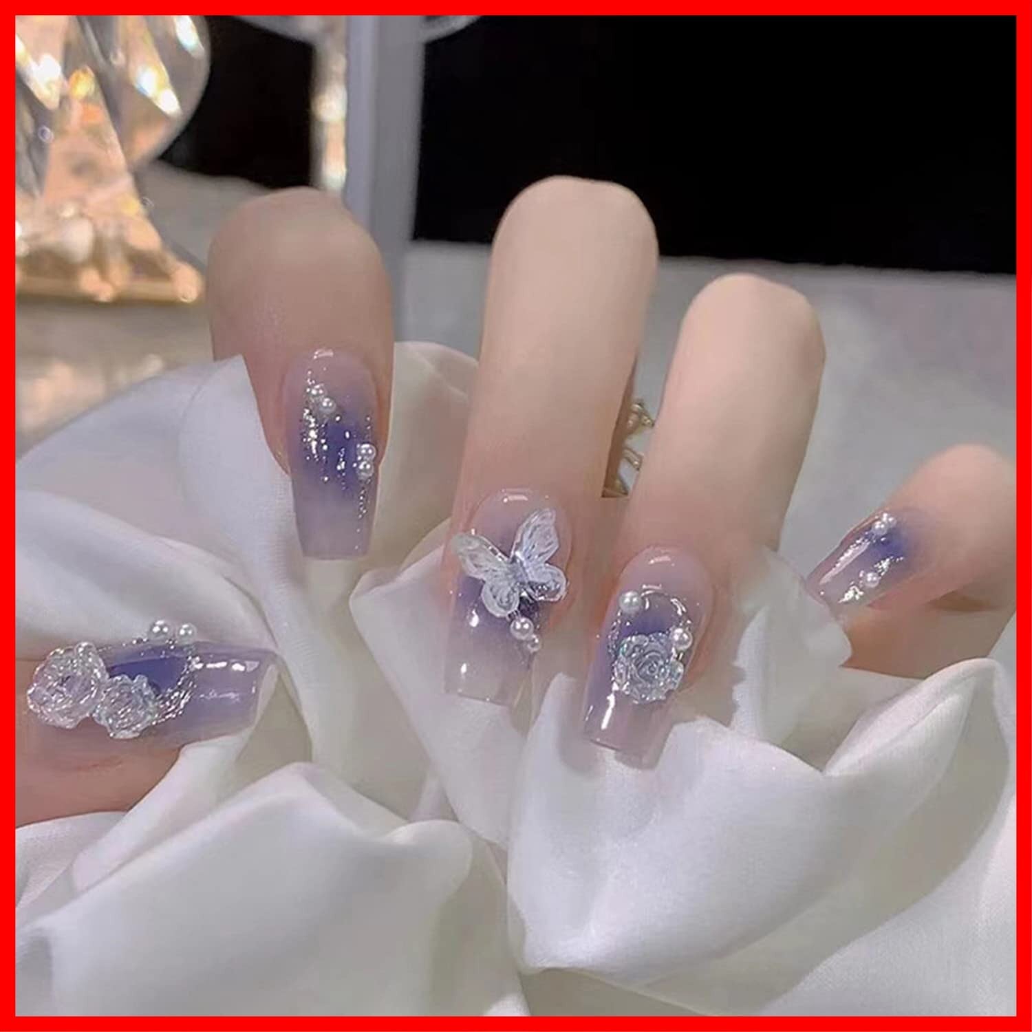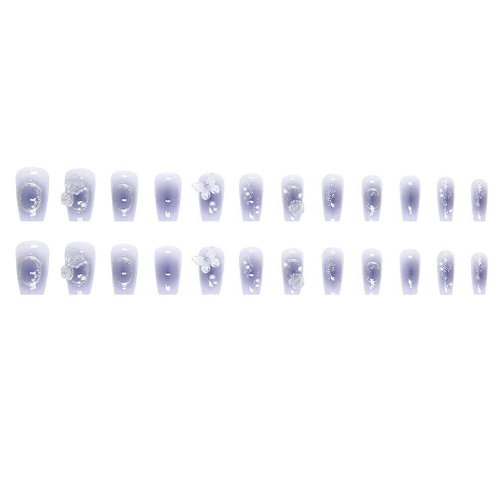 ネイルチップ ショート 24枚入 簡単 ジェルネイル ネイルシール かわいいパープル つけ爪 ネイル ビーズ 落ち着いていた紫 人気 韓国 ネイル用品 両面テープ48枚付き (カメリアと蝶々) | hananoki