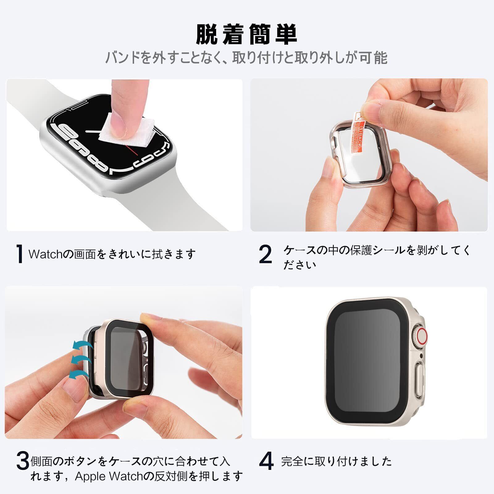 LISAMER 対応 Apple Watch ケース Series 10/9/8/SE/7/6/5/4 46mm アップルウォッチ用 ケース 防水 一体型 新デザイン 3D直角エッジ 超薄型 PC+ガラス素材 高透過率 対応 Apple Watch カバー 全面保護 装着簡単 高耐久 耐衝撃 スターライト | hananoki