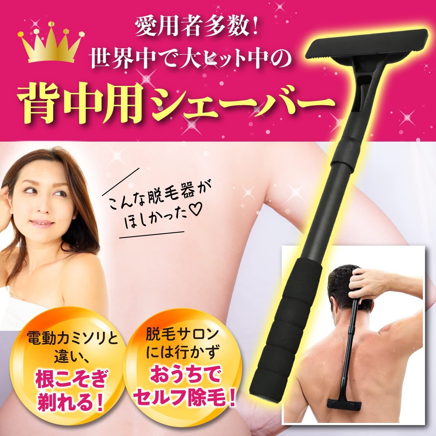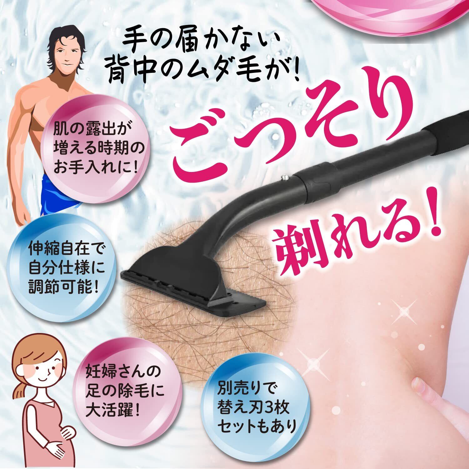 背中 カミソリ バックヘアシェーバー 背中毛 除毛 ムダ毛処理 男女兼用 (伸縮可能タイプ)