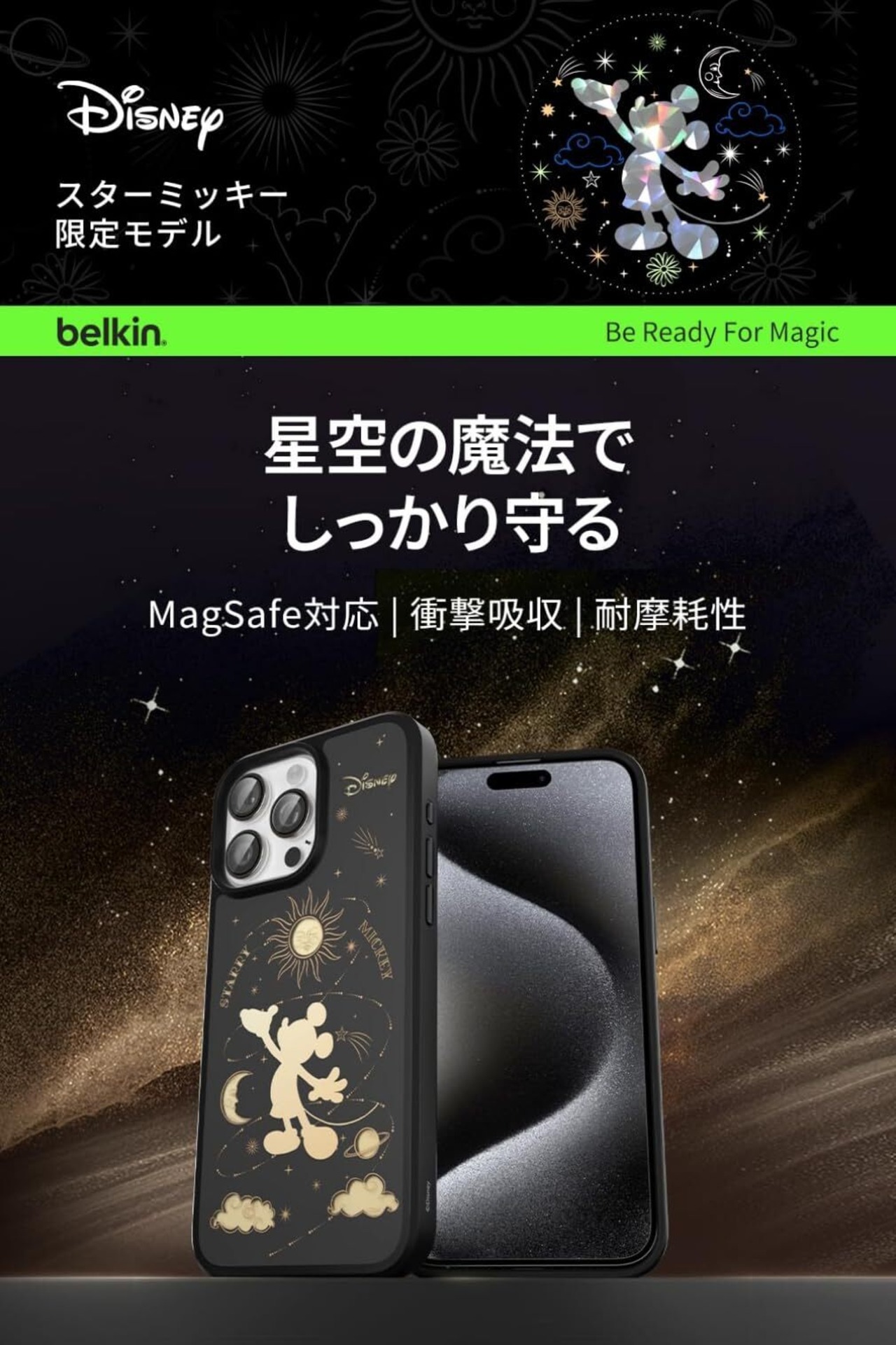 【スターミッキー】Belkin iPhone 15用ケース MagSafe対応 マグネット搭載 薄型 超耐衝撃 UV耐性 黄ばみ防止 ソフトTPU ブラック MSA016qcLD-DY