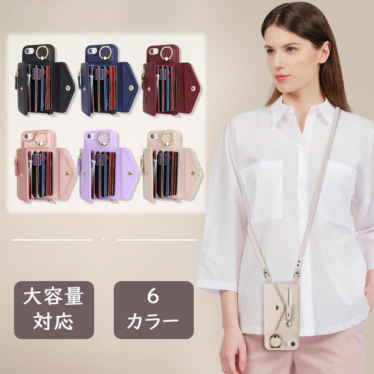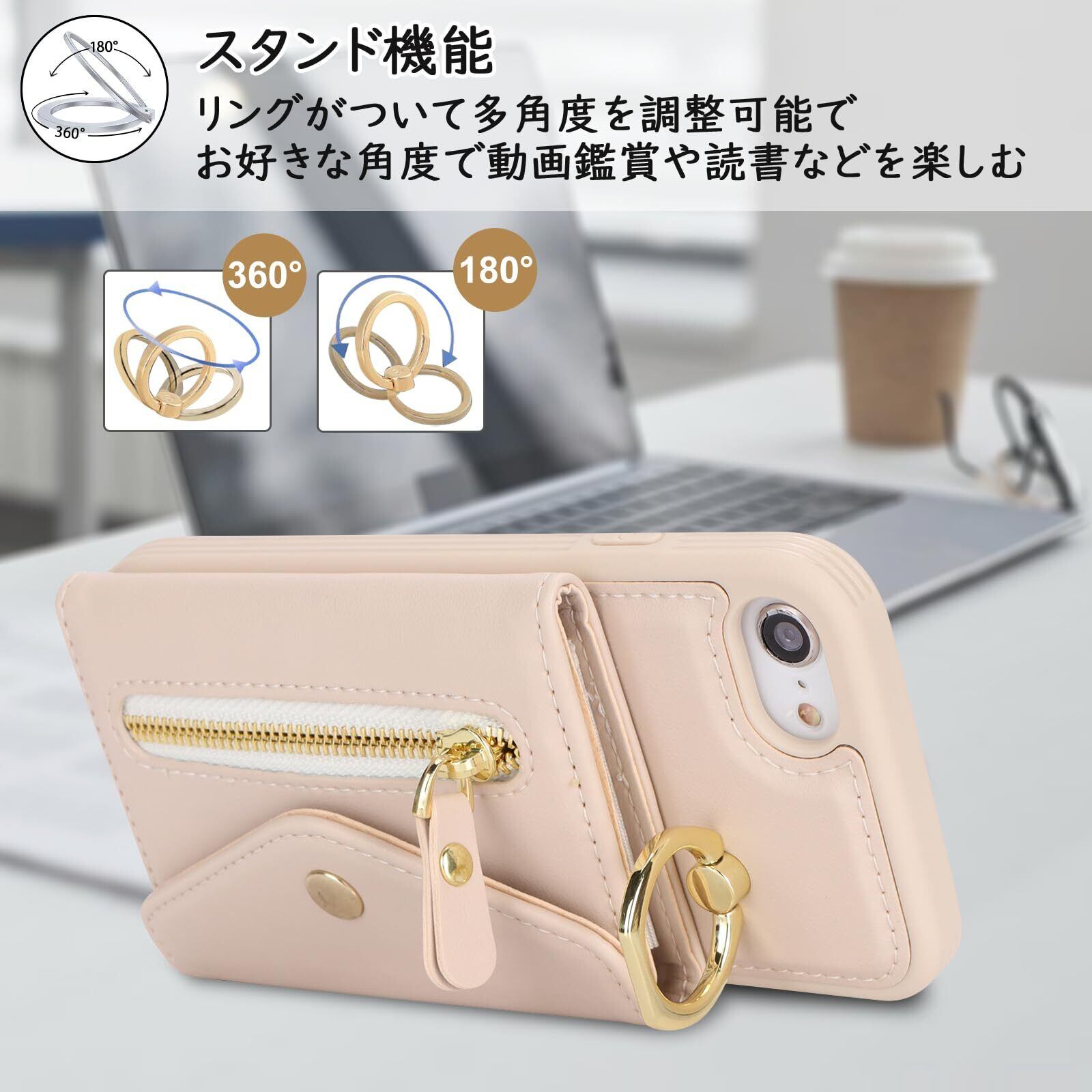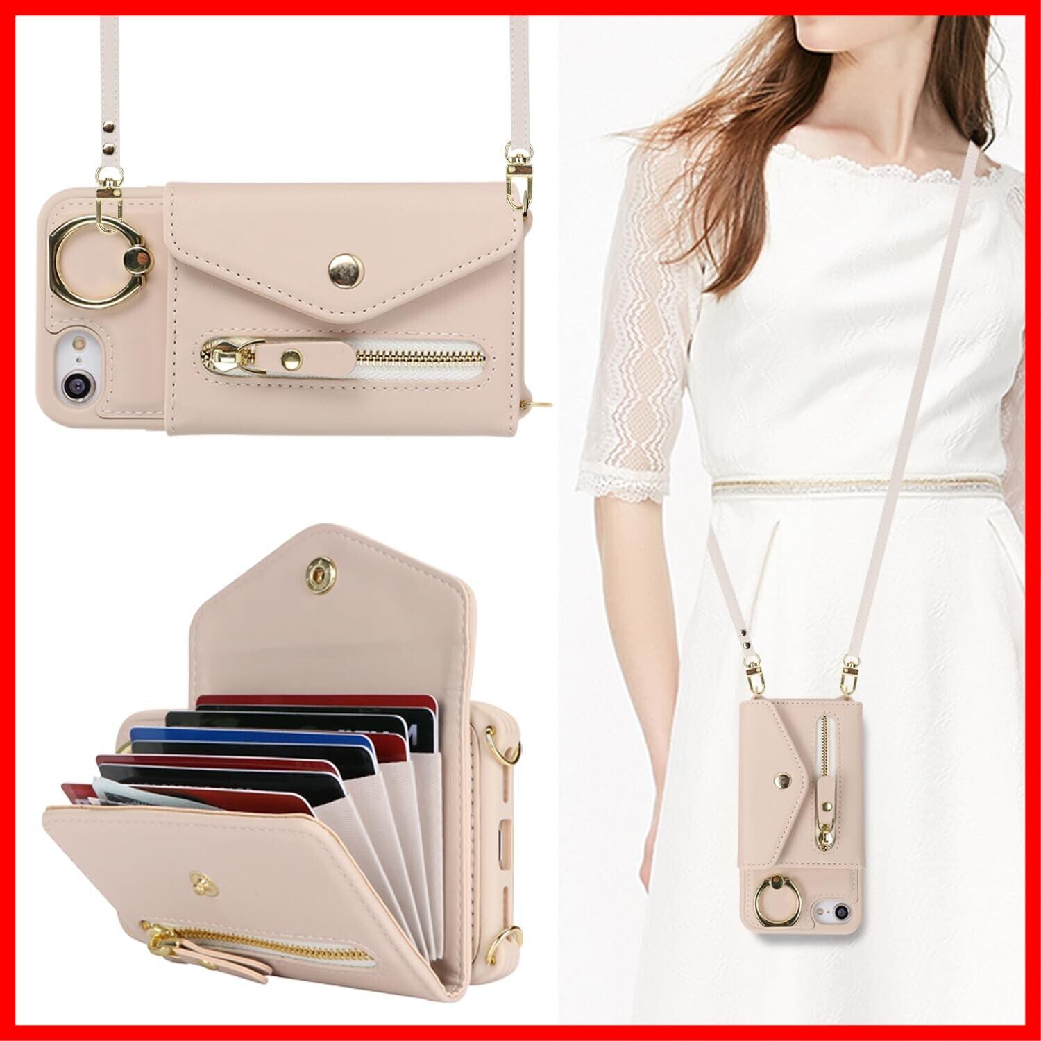 【Hamany】 iphone se ケース オシャレ ショルダー iphonese第3世代 ケース カード収納 大容量 iphone8 ケース 手帳型 リング付き スマホカバー 耐衝撃 全面保護 スタンド機能 iphone7ケース 肩掛け 斜めかけ カバー -アンバー ホワイト