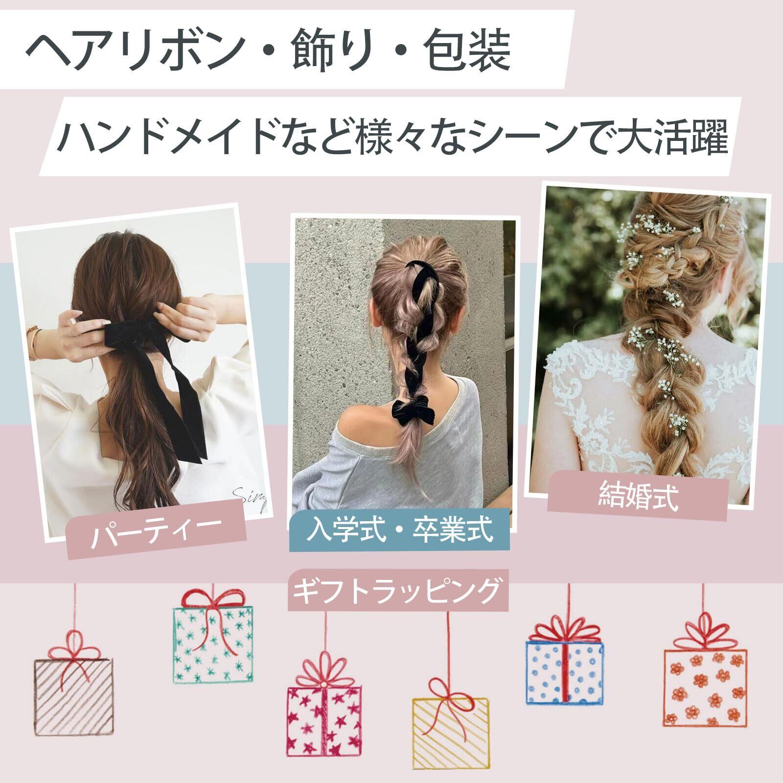 ヘアリボン・ベルト・包装リボンやハンドメイドなど様々なシーンで大活躍です。