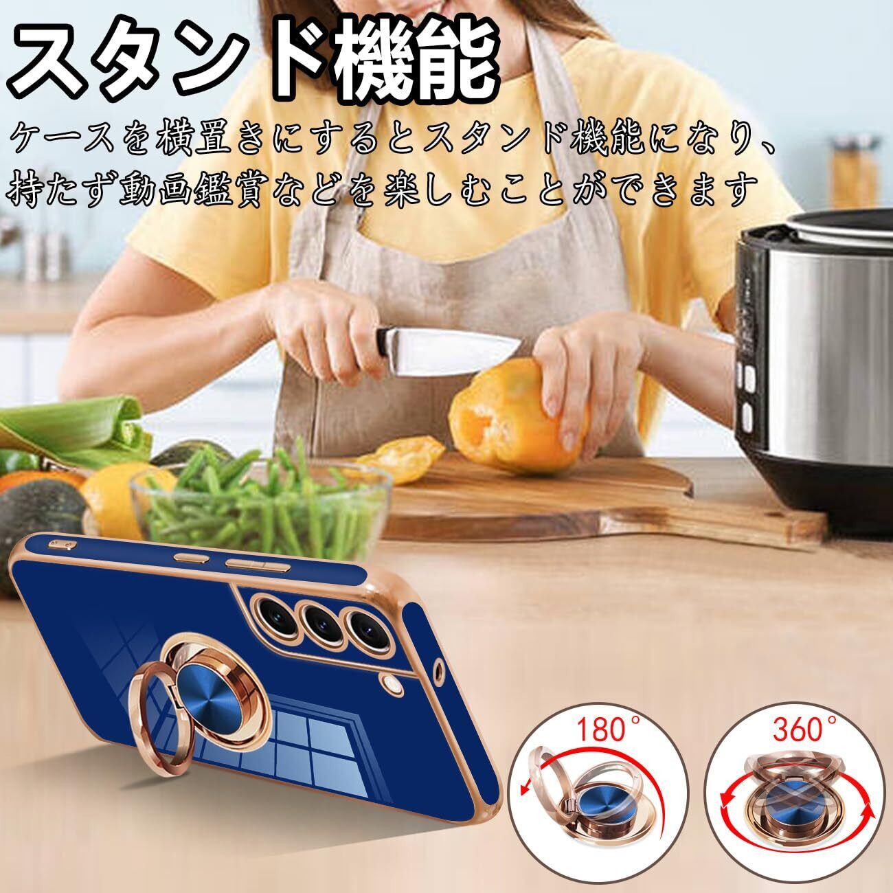 Samsung Galaxy S22 ケース リング付き 耐衝撃 軽量 カバー SC-51C SCG13 ケース ギャラクシー S22 リング カバー TPU 保護カバー レンズ保護 スマホケース 衝撃吸収 360°回転 スタンド機能 携帯カバー 車載ホルダー対応 メッキ加工 人気 カバー ストラップホール付き サムスン ギャラクシー S22 ケース(ブルー) | hananoki