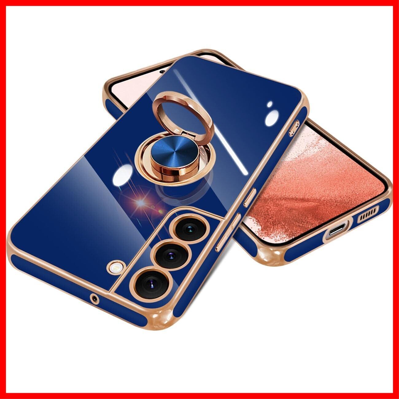 Samsung Galaxy S22 ケース リング付き 耐衝撃 軽量 カバー SC-51C SCG13 ケース ギャラクシー S22 リング カバー TPU 保護カバー レンズ保護 スマホケース 衝撃吸収 360°回転 スタンド機能 携帯カバー 車載ホルダー対応 メッキ加工 人気 カバー ストラップホール付き サムスン ギャラクシー S22 ケース(ブルー)