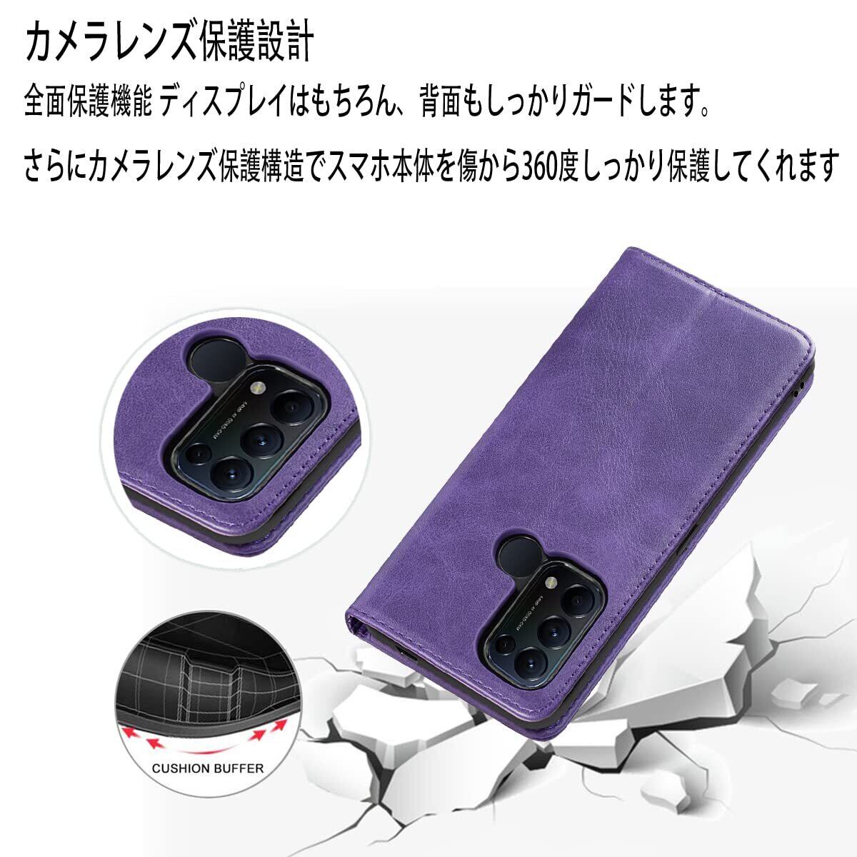 OPPO Reno 5A ケース 手帳型 高質PUレザー OPPO Reno 5A カバー 耐衝撃 オッポ Reno 5A 手帳 ケース 内蔵マグネット開閉式 ベルトなし スマホケース おしゃれ カードポケット スタンド機能 便利 スプラット同梱 携帯ケース (パープル)