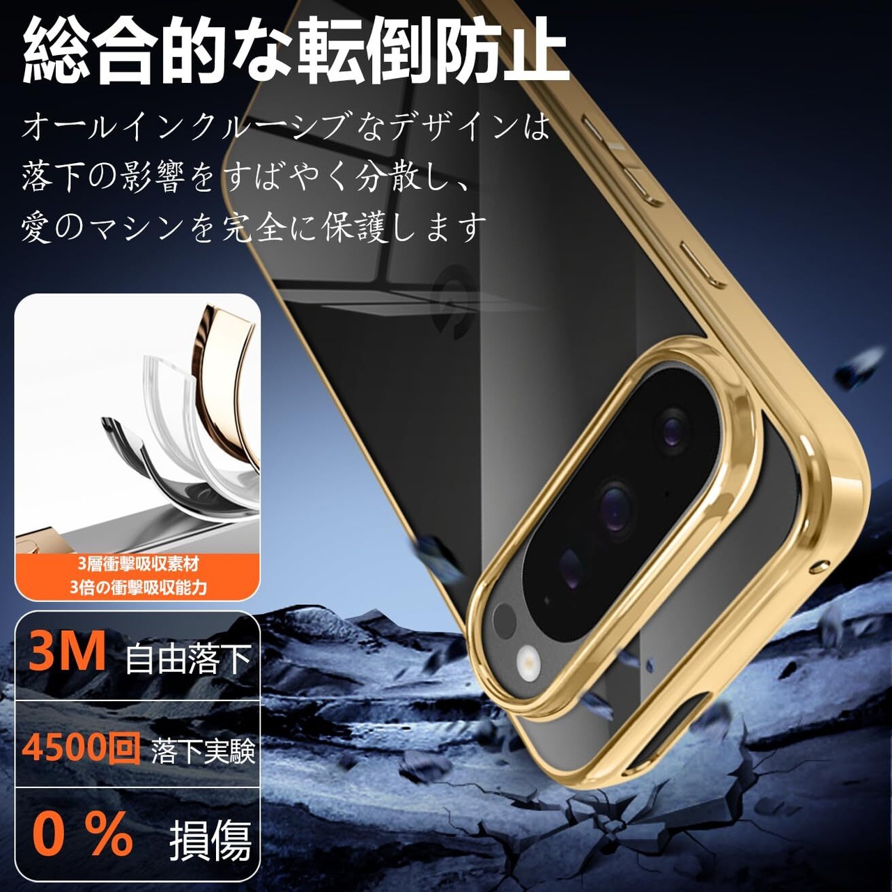Google pixel 9/9pro 用 ケース クリア 薄型 ピクセル9/9pro スマホケース カバー 透明 TPU 耐衝撃 人気 落下防止(ゴールド)