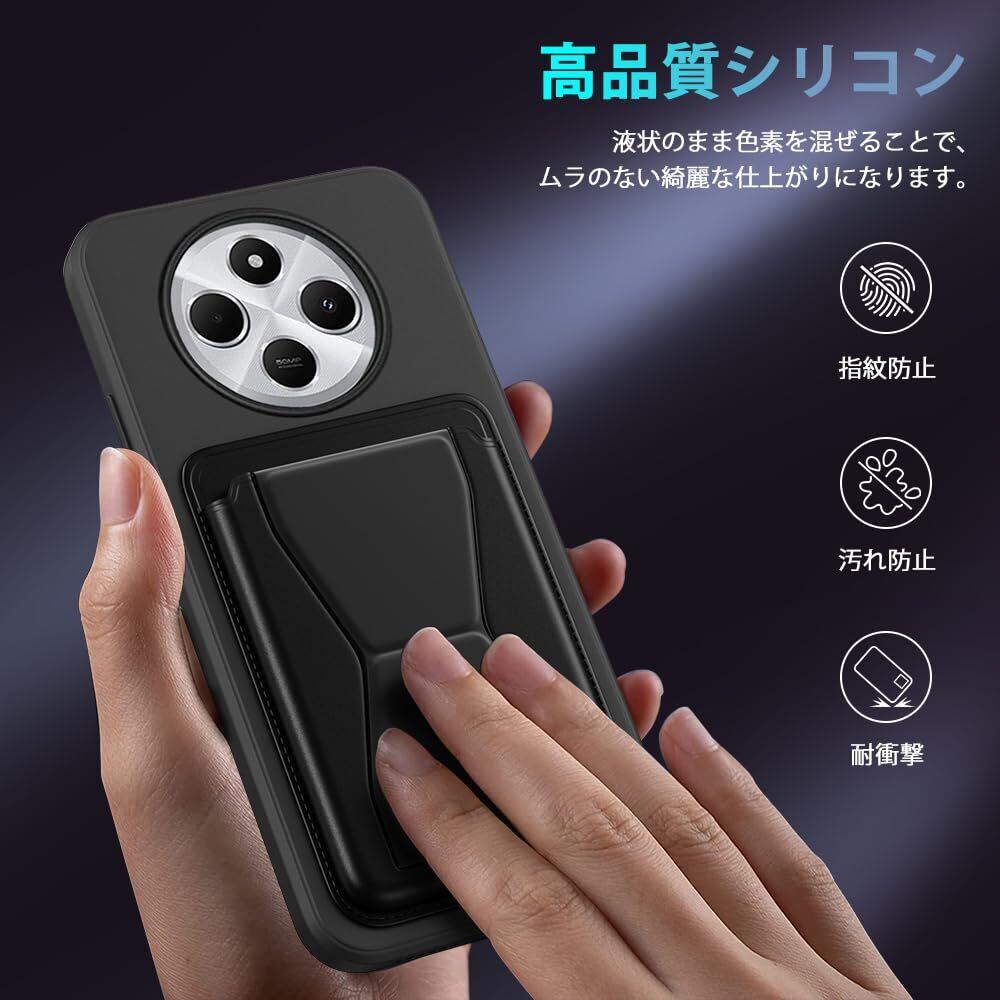 対応 XiaoMi Redmi 14C ケース カード収納 スタンド付き シャオミ Redmi 14C シリコン スマホケース バンド付き スタンド機能 耐久 滑り止め 黑
