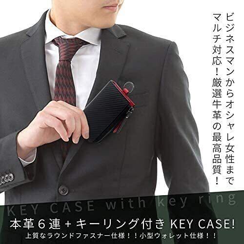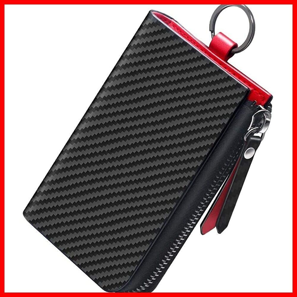 [Aemicion] キーケース スマートキー 車キーケース メンズ キーホルダー 本革 レザー カーボンレザー ハイブリッドレザー 6連 ファスナー カード入れ付き 札入れ付き 多機能 大容量 コンパクト プレゼント