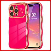 ZTOFERA iPhone 15 Pro Max 用 ハートケース 人気 おしゃれ iPhone 15 Pro Max 波型ケース 柔軟な TPU シリコン ウェーブ デザイン スマホケース メッキ加工 ソフト 軽量 耐衝撃 韓国 可愛い アイフォン 15 Pro Max ケース 女子 女性 携帯電話カバー ワイヤレス充電対応 (ホットピンク)