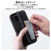 【マグネット開閉カード収納】開閉機能がついており、フラップを開けるとカードが収納できます。※ICカードを収納される場合は、干渉防止のための別途改札エラー防止フィルム(別売)をお買い求め下さい。