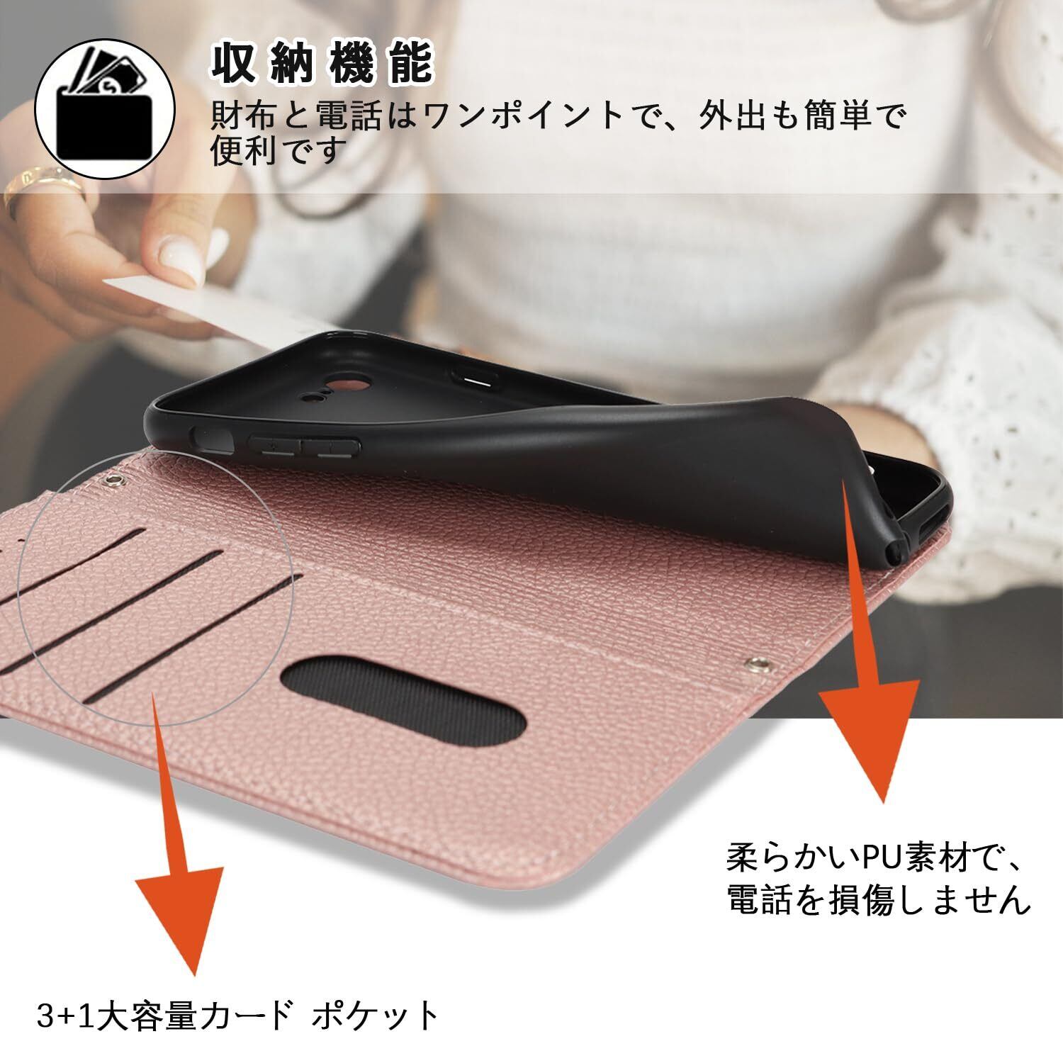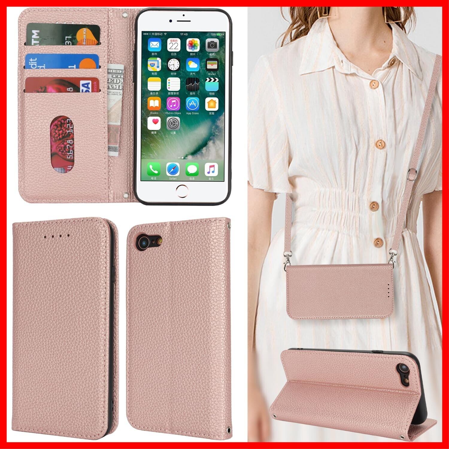 【Hamany】 iphone se ケース ショルダー 手帳型 iphonese第3世代 ケース ストラップ カード収納 スタンド機能 iphone8 ケース ショルダー マグネット式 レザー iphone7ケース 手帳型 耐衝撃 耐久性 耐摩擦 -ローズゴールド