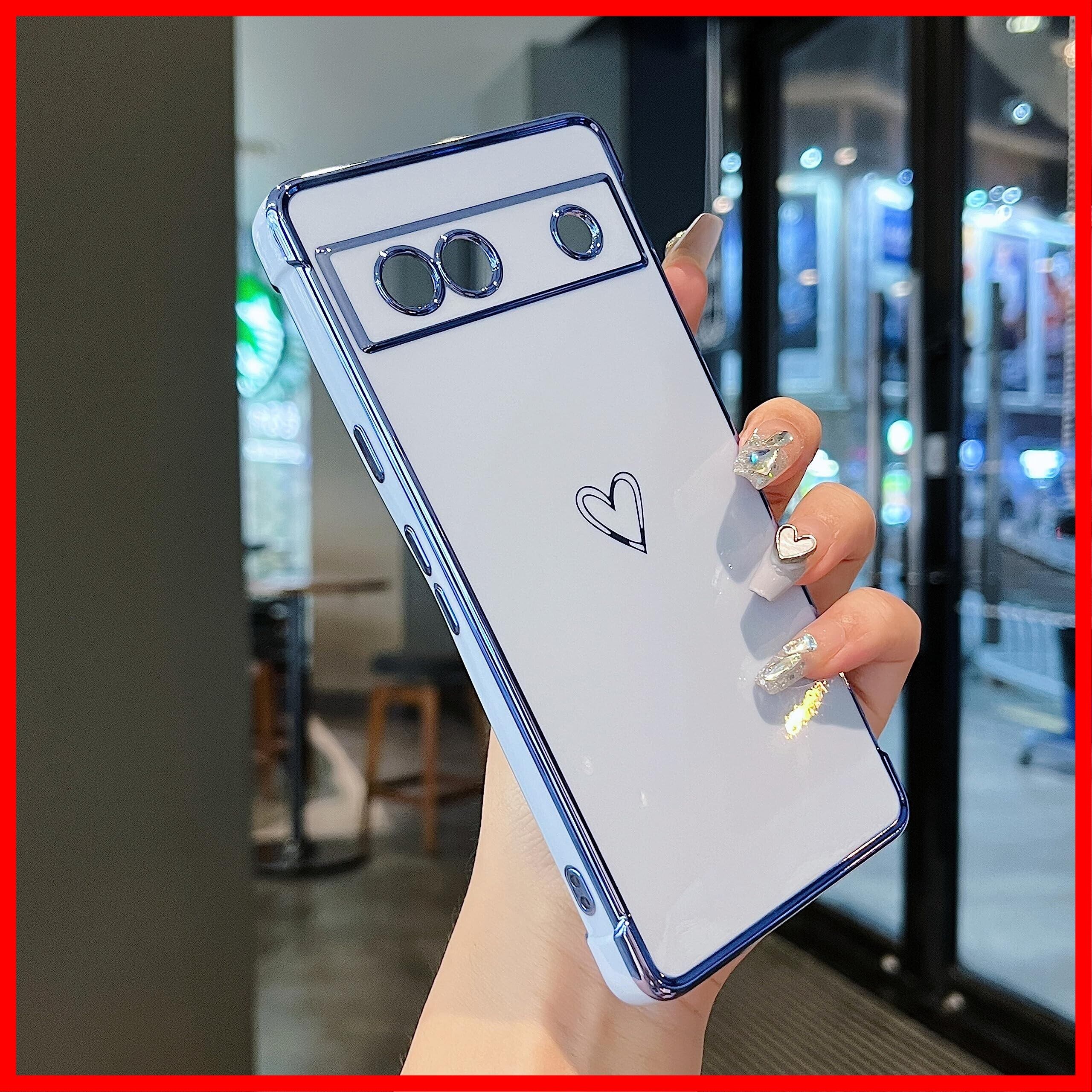 ZTOFERA Google Pixel 7a 用 ハートケース 柔軟な TPU シリコン メッキ加工 ソフト 軽量 耐衝撃 おしゃれ 韓国 可愛い Google Pixel 7A ケース 携帯カバー 女性 心パターン スマホケース ワイヤレス充電対応 (シエラブルー) | hananoki