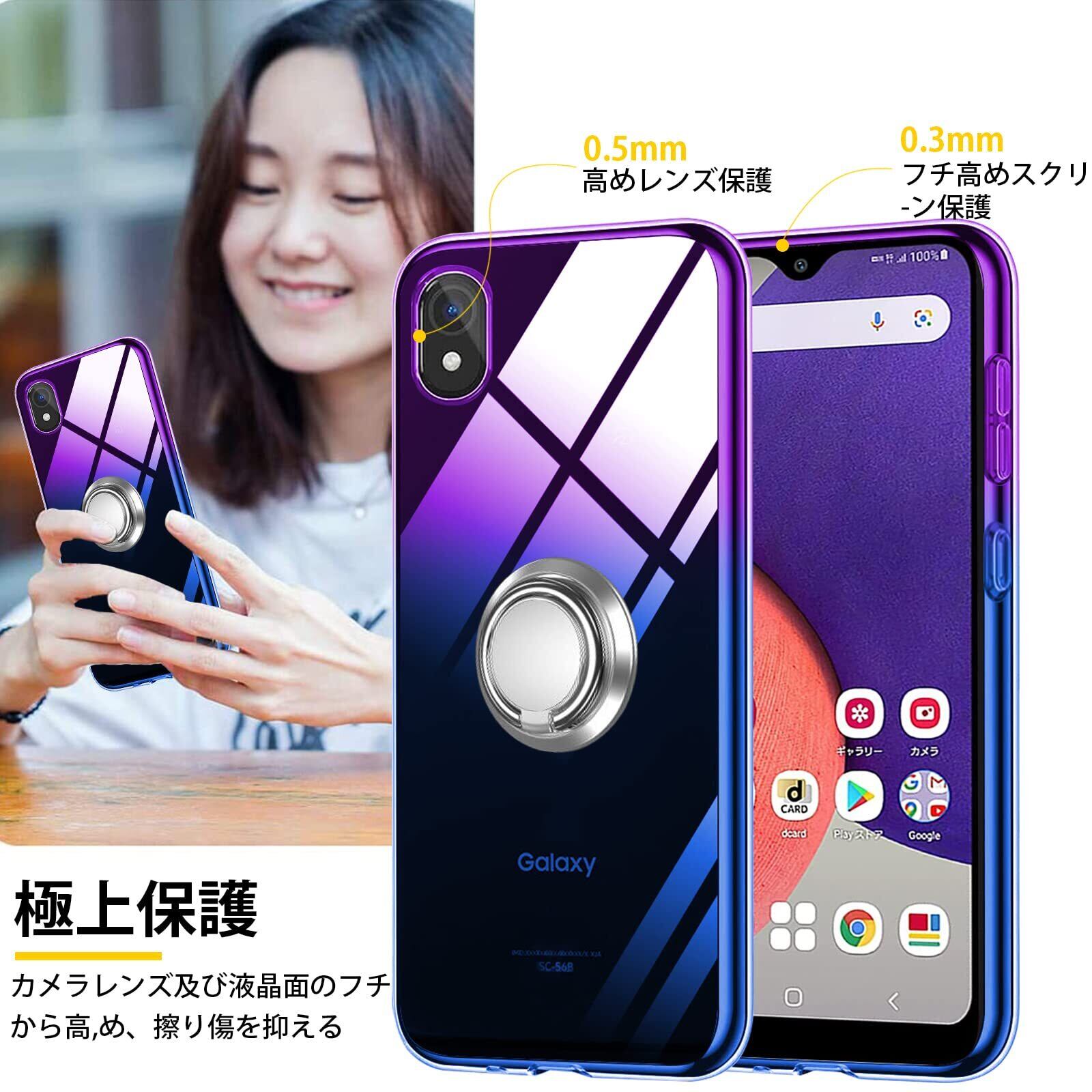 Galaxy A23 5G ケース リング クリア tpu 薄型 軽量 SC-56C SCG18 スマホケース ギャラクシーA23 カバー シリコン グラデーション色 ケース 耐衝撃 指紋防止 車載ホルダー対応 防塵 一体型 人気 携帯カバー パープルブルー
