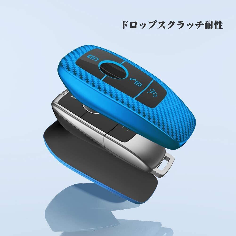 [OATSBASF] ベンツ キーケース ベンツキー カバー 炭素繊維 360度フルプロテクション 傷 防止 ベンツ アクセサリー 車 e系 キーケース(ブルー)