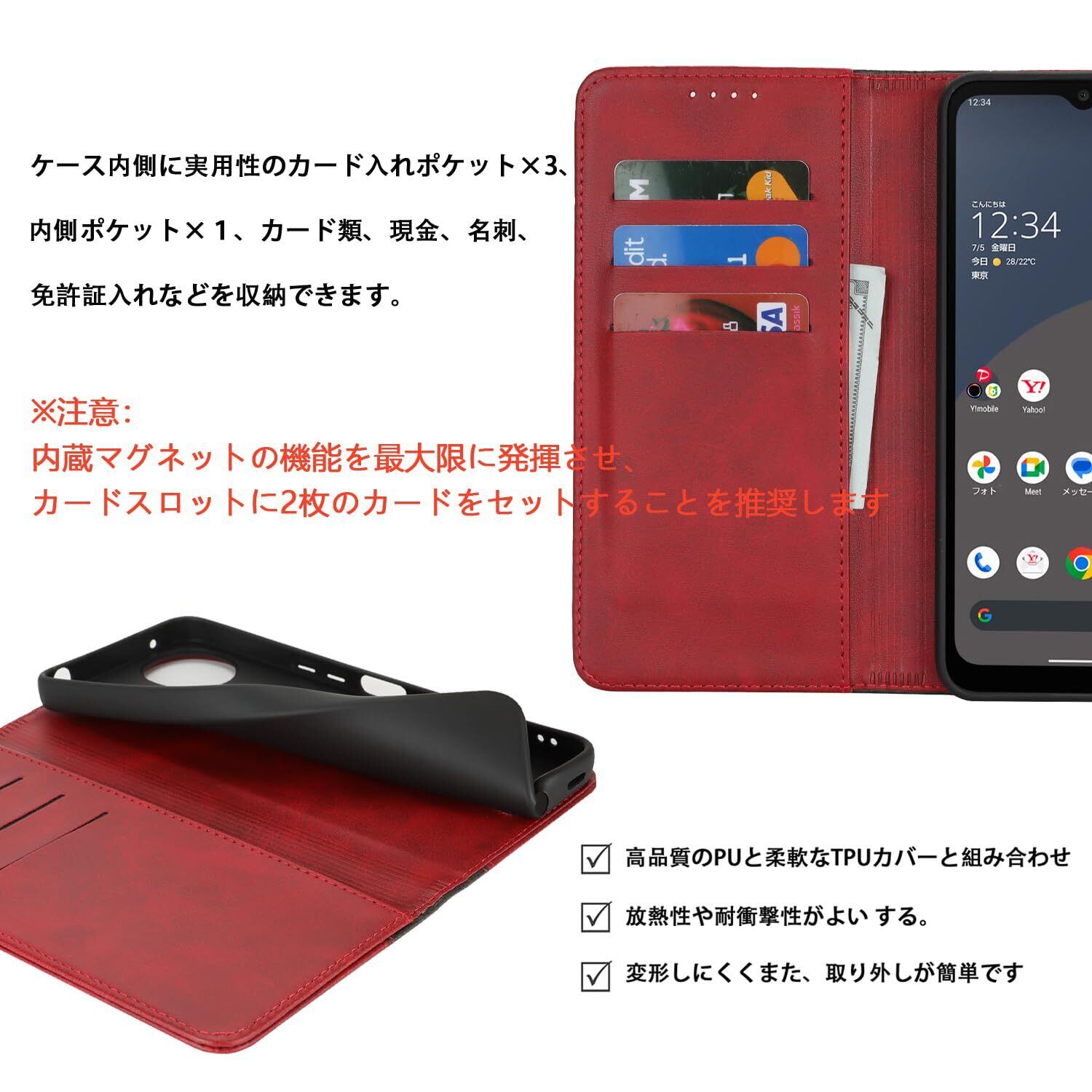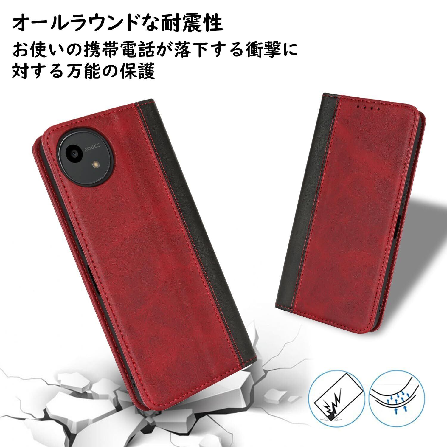 Havaya AQUOS wish4 ケース アクオスwish4ケース aquos wish4 sh-52e ケース 手帳型 カバー au 耐衝撃 docomo シャープ Sharp ウイッシュ4 SoftBank ワイモバイル カード収納 スタンド機能 フェイクレザー -レッド+ブラック | hananoki