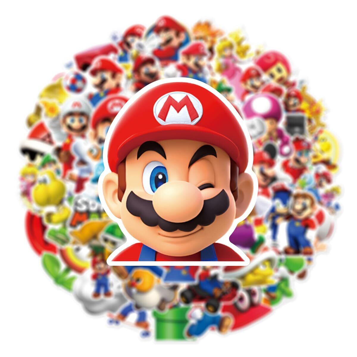 マリオ ステッカー50枚入り キャラクター ステッカー 可愛い 装飾品 防水シールステッカー 人気アニメ かわいい 手帳セット スーツケース 車 バイク ヘルメット スケボー ギターなどに適用