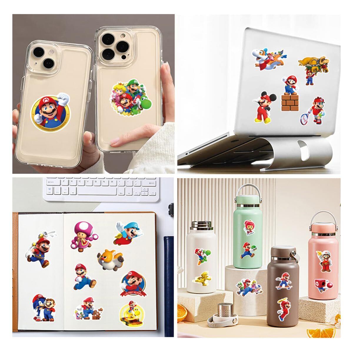 マリオ ステッカー50枚入り キャラクター ステッカー 可愛い 装飾品 防水シールステッカー 人気アニメ かわいい 手帳セット スーツケース 車 バイク ヘルメット スケボー ギターなどに適用 | hananoki
