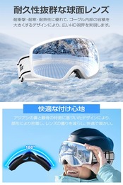 【眼鏡対応・ヘルメット対応】このスキーゴーグルは内部容積を大きく設計されており、裏側のスポンジにメガネの掛け部があり、違和感なく装着可能です。幅 16cm× 高 7cm 以内のメガネに対応し、近視の方にも配慮されています。さらに、2 つのアジャスターと高弾性ベルトを使って、約 45cm から 80cm の周囲に対応しています。ヘルメットとも簡単に着用できます。ベルトは滑り止めデザインなので、ゴーグルのズレや落としを心配する必要はありません。